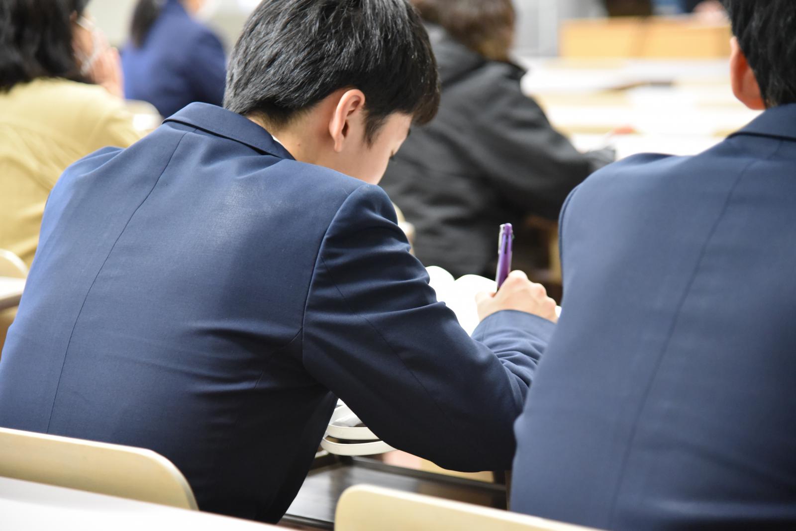「学習等説明会」では、生物・化学・英語の各担当教員から課題への取り組み方や到達目標など、スクーリングの概要について説明があったほか、職員から図書館の利用方法や特待生制度、学生寮入寮手続等について説明がありました。合格者の真剣な眼差しで話を聴きながら必死にメモを取る姿が印象的でした。