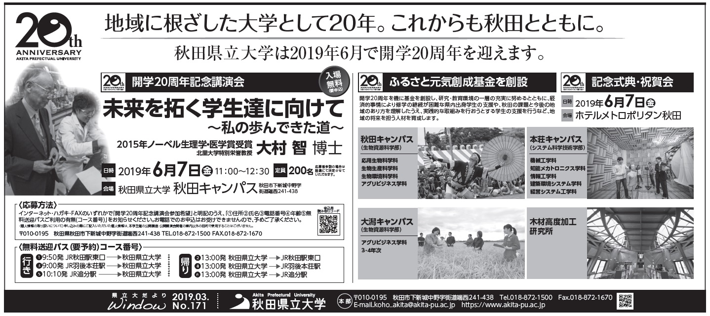 ※詳細は、秋田県立大学開学20周年特設ページをご覧ください