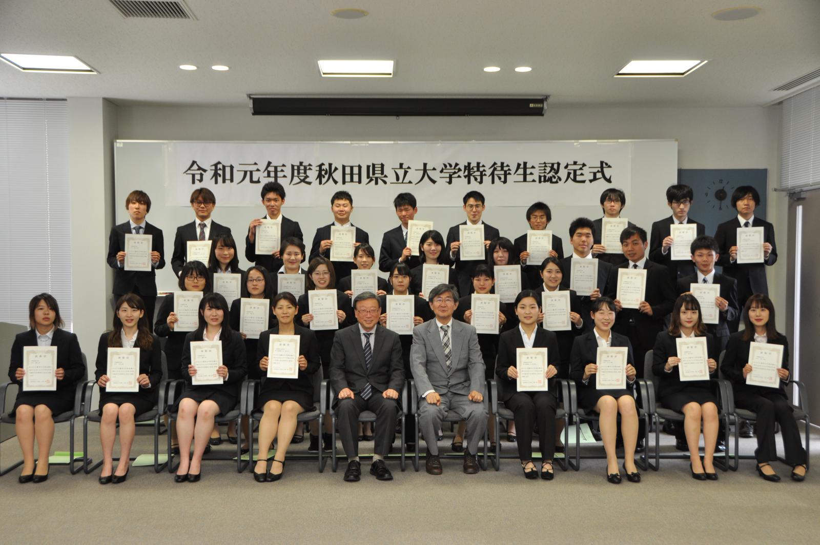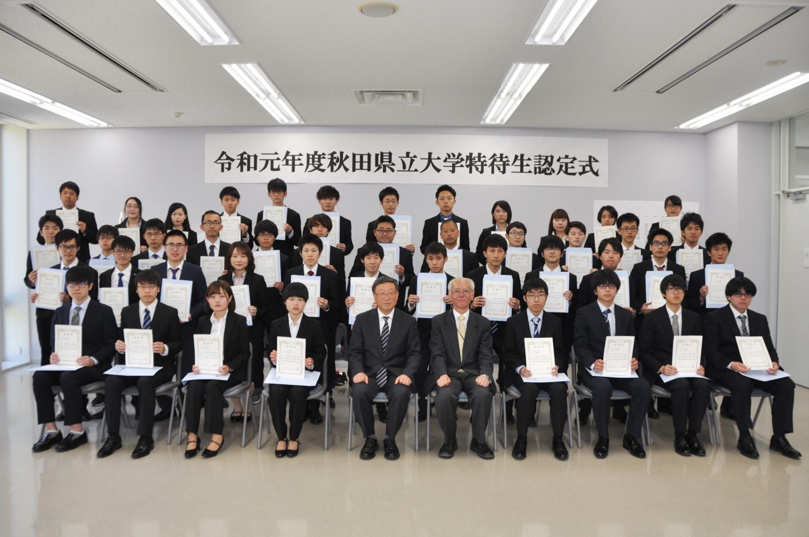 5月29日、6月4日の両日、令和元年度秋田県立大学特待生認定式・表彰式を執り行いました。本学特待生制度は、成績優秀で他の学生の模範となる者を特待生として認定し、優秀な学生の受け入れや在学生の学習意欲の一層の向上を図ることを目的としています。