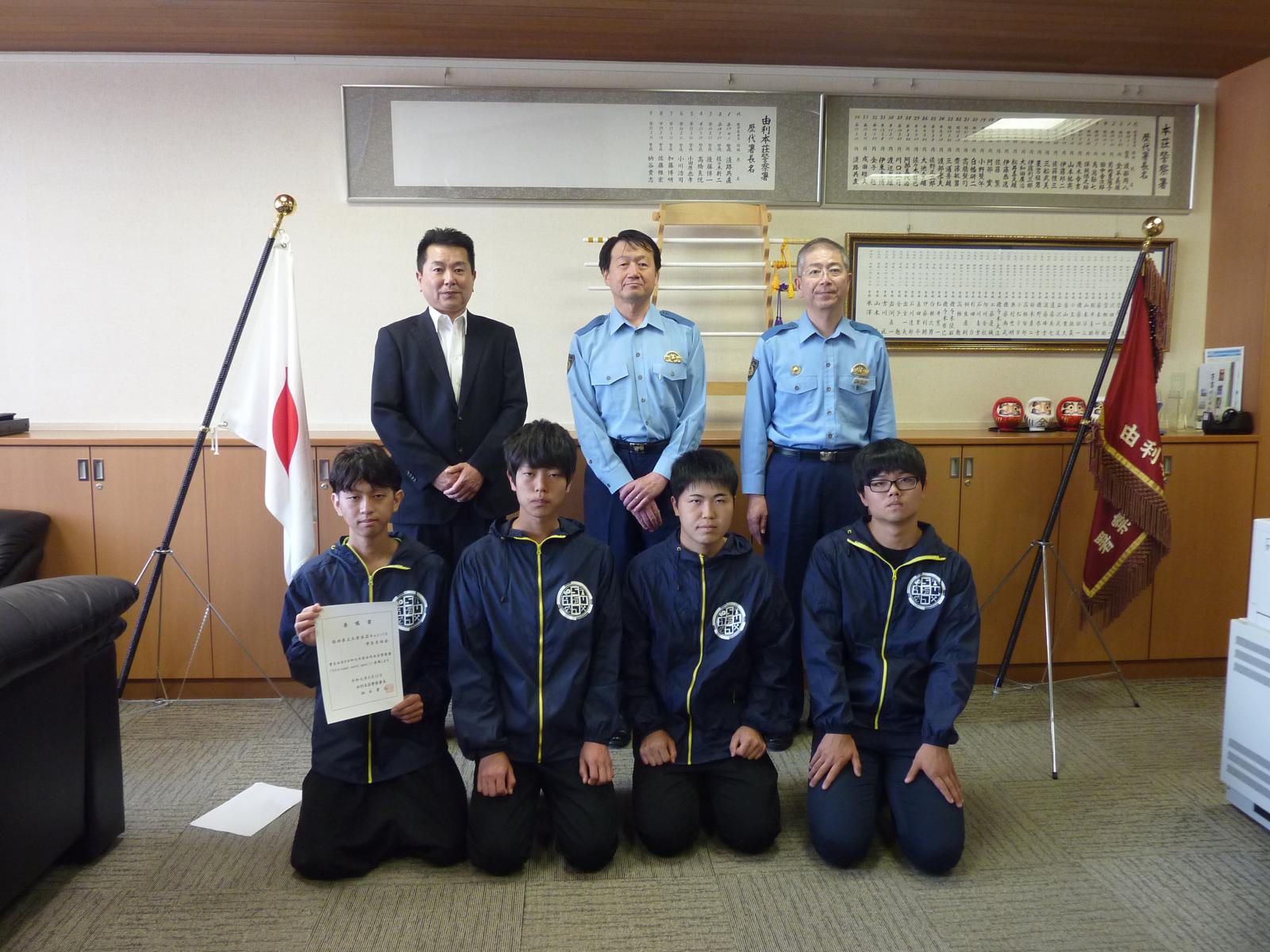 6月12日(水)に由利本荘警察署でSSA委嘱書交付式が行われ、本荘キャンパスの学生自治会が委嘱を受けました。SSA(Student Security Agents)とは、由利本荘警察署と本荘キャンパス学生自治会が連携して防犯活動を行う独自の取り組みで、2013年から活動を行っているものです。