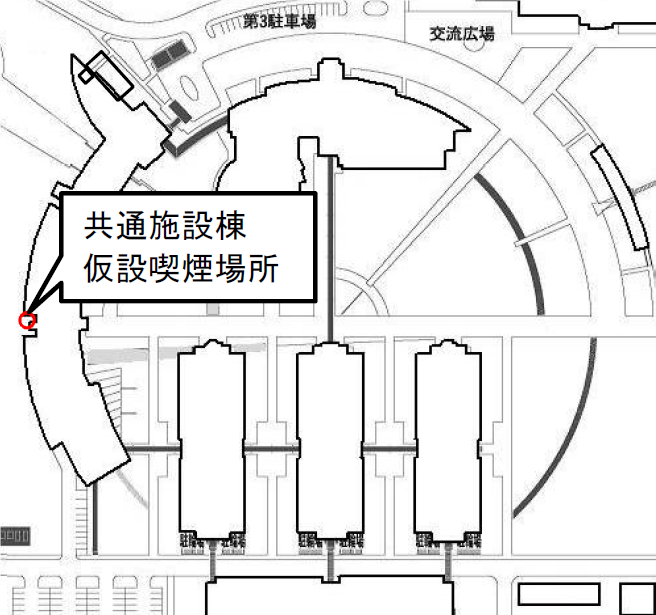 ※8月1日にこの仮設喫煙所は廃止し、全面禁煙に移行します。