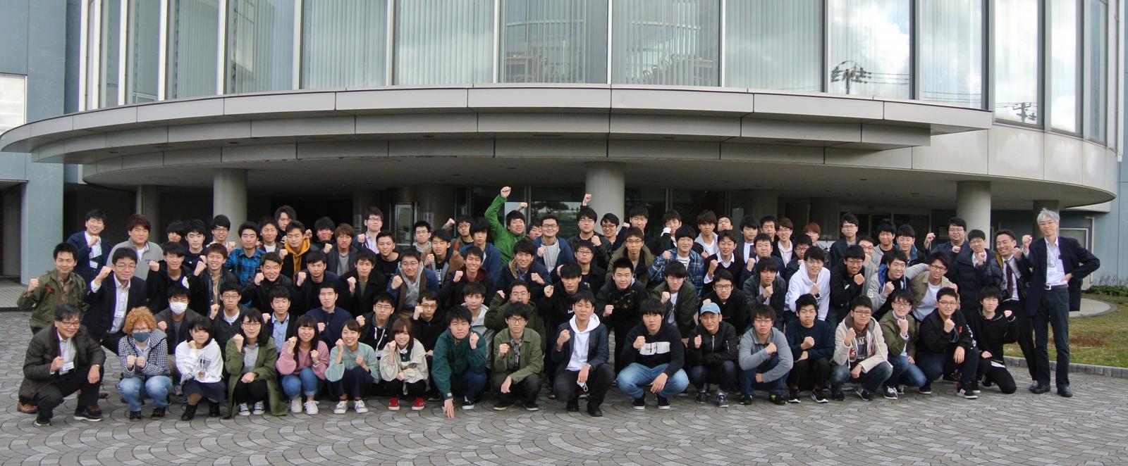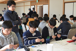 はじめに秋田県産業技術センターで、航空機用CFRPの加工や成型機、液晶レンズなど、多くの最新技術を見学しました。その後ユースパルに移り、グループワークで見学内容についてまとめたものを発表しました。機械工学の先端技術に触れることで、モノづくりの楽しさと、地域や社会に貢献することの意義を考えました。その後の大学院生や教職員の話を聴講することで今後の大学生活における心構えを身に付けるとともに、クラスメートや教職員との交流を深めた研修でした。