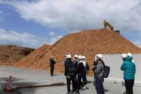 到着後、まずは研修室で発電所の概要紹介のビデオを見た後、補足の説明と質疑応答を行いました。 次に学生は3班に分かれ、主幹制御室、燃料貯蔵室、燃料ヤード、燃料の乾燥機を見学。そしてボイラー、発電機のある建屋を外から見学しました。本工場の燃料は、秋田杉を中心とする秋田県内から排出される木材チップと、輸入した椰子油の絞りかす(椰子殻)であり、その燃料を近くで、手にとって見学できたことは、1年生にとって、かなり興味深いことだったようです。
