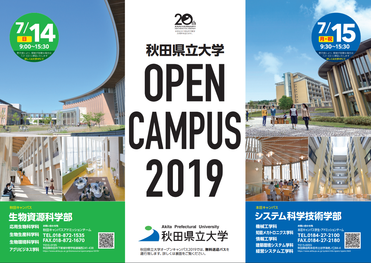 7月14日(日)生物資源科学部、15日(月・祝)システム科学技術学部の「オープンキャンパス2019」を実施いたします。多くの皆様のご来場を、学生・教職員一同お待ちしております。