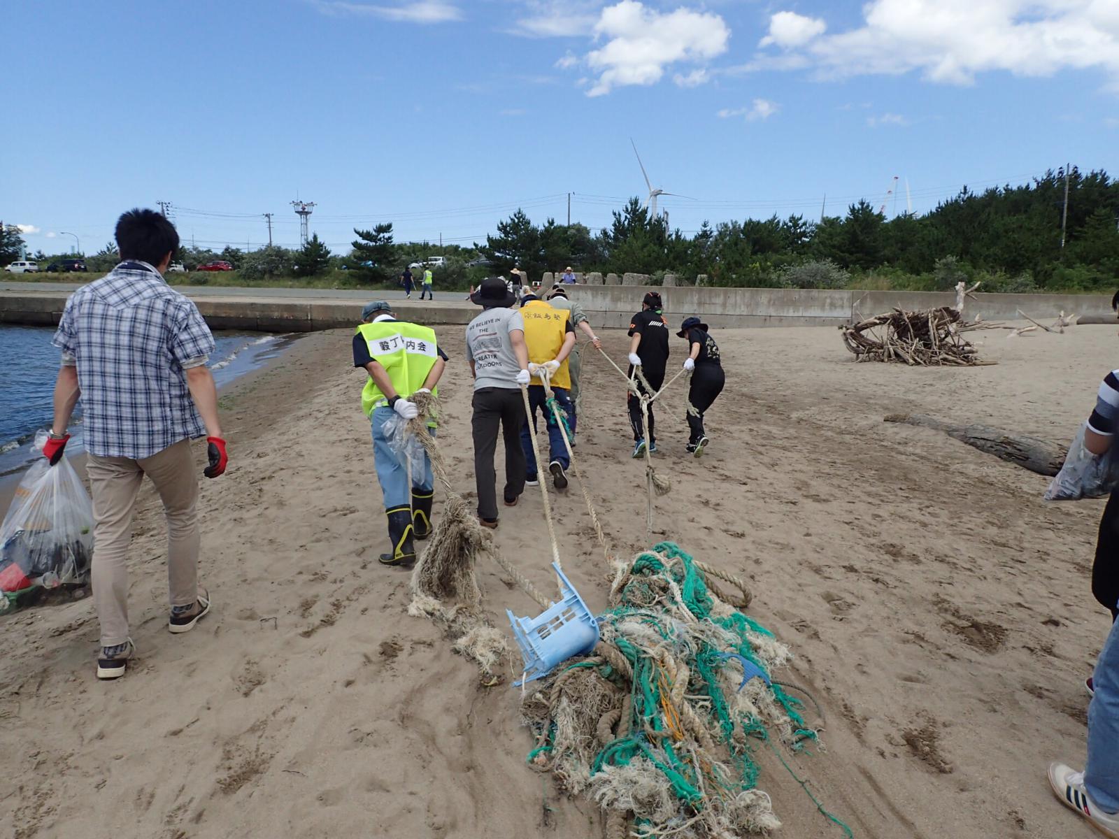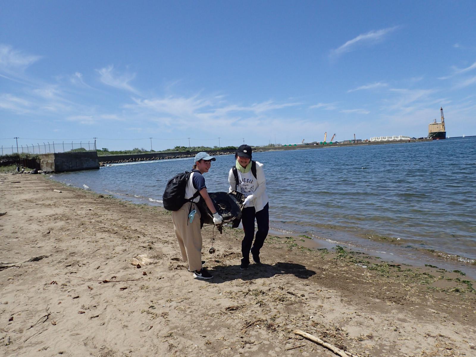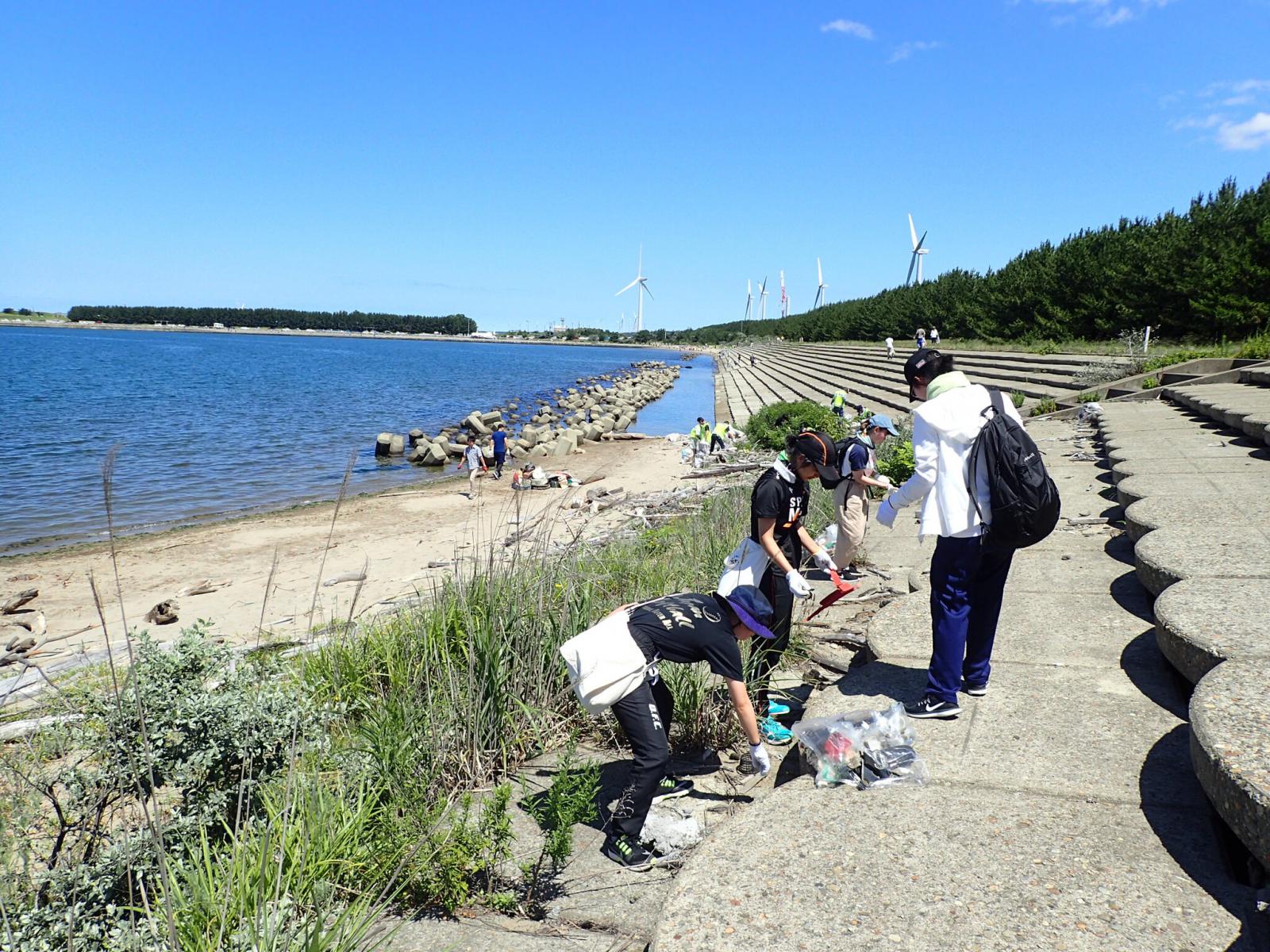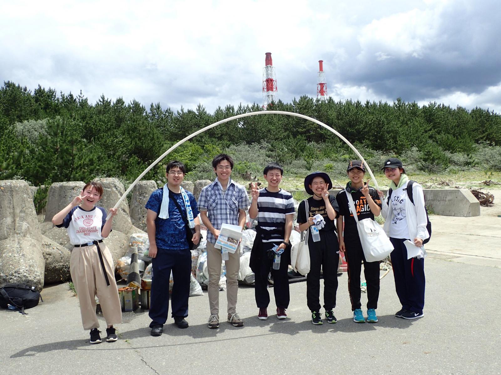 9月に秋田県で開催される『全国豊かな海づくり大会』を前に、7月15日(月)の海の日に、大会会場となる秋田マリーナのクリーンアップ活動が行われ、本学のエコの環(わ)サポーターズサークルのメンバー7名が参加しました。飯島地区住民や他のボランティアの皆さんと力を合わせ、プラスチックゴミなど多種多様な海ゴミを拾い集め、会場のごみ拾いに汗を流しました。