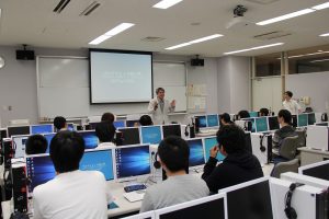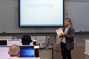 本学では情報工学科を中心として、秋田県内のプログラミング教育の支援を行っております。秋田県内でプログラミング教育を担える人材を育成する目的で、5月20日に本荘キャンパス(システム科学技術学部)において、7月25日に秋田キャンパス(生物資源科学部)で、学生向けにプログラミング教育のメンター育成講座を開催しました。