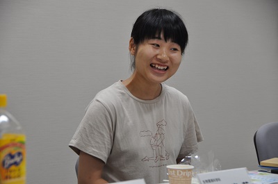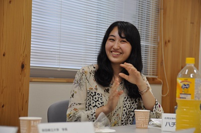 参加者からは、入学後に取り組んだボランティア活動や、長期留学を検討していることなどの報告がありました。「学生自主研究」については、参加者がそれぞれ取り組んでいる研究内容を紹介したほか、「入学するまで学生自主研究という制度があることを知らなかったので、もっと高校生にPRしたほうがよい」という意見も挙がりました。このほか、大潟村にある学生寮(清新寮)の充実についての提言もありました。