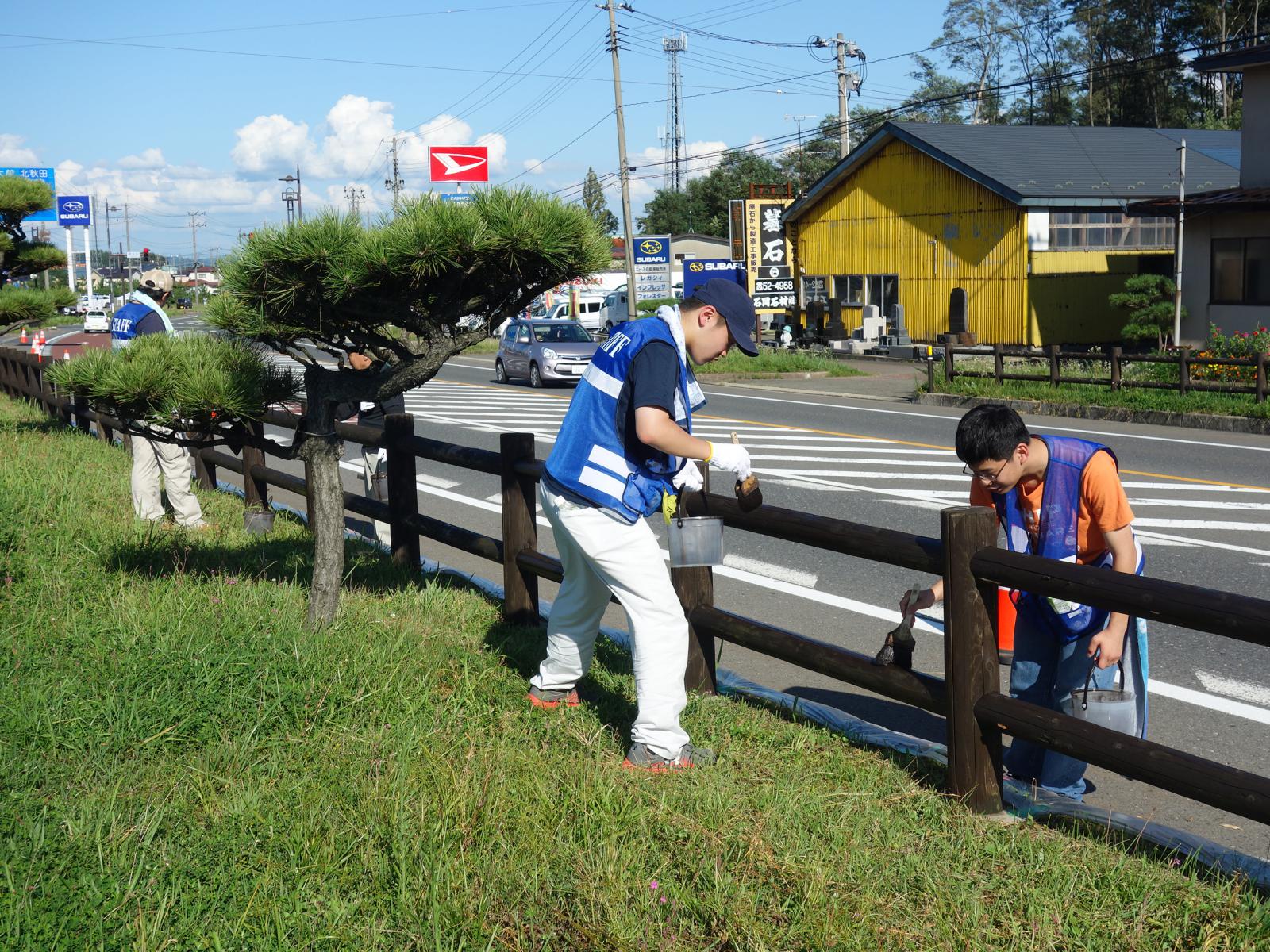 国道沿いの木柵を塗装するという貴重な体験を通して心地よい汗を流し、“木都能代”に相応しいキレイな街並みづくり・景観美化に貢献してみませんか?