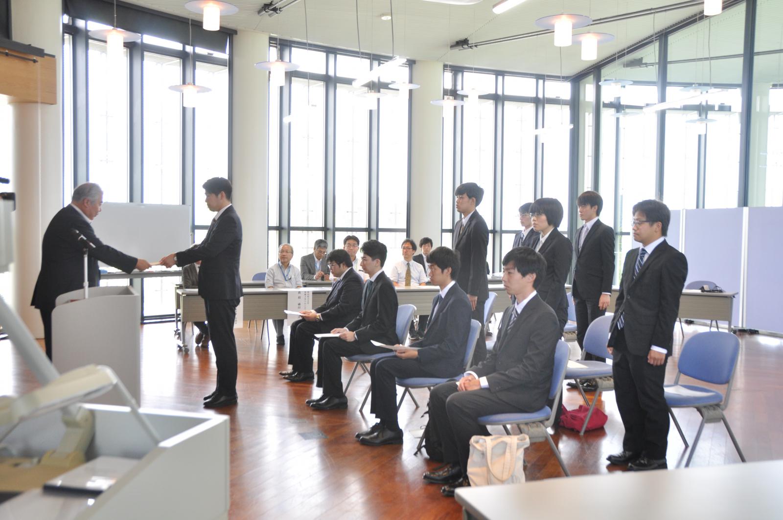 公益財団法人本荘由利産学振興財団による令和元年度助成事業(秋田県立大学システム科学技術学部向け)について、助成先が決定し、令和元年7月5日に助成通知書交付式が開催されました。本助成事業は、研究のさらなる振興や国際交流などを目的とし、本学内から対象となる研究を広く募集するものです。今年度は、教員からはシステム科学技術学部機械工学科の藤井達也助教、学生からは共同ライフサイクルデザイン工学専攻1年の阿部公晟さん、電子情報システム学科3年の佐瀬高志さん・中川龍哉さん(共同申請)、機械知能システム学専攻2年の矢田部一輝さん、電子情報システム学専攻2年の奥田優樹さん、経営システム工学専攻1年の須藤百香さん、機械知能システム学専攻2年田中晴隆さん、機械知能システム学専攻1年橋本真澄さん、機械知能システム学専攻1年鷲津友貴さんの9件が助成対象として選ばれました。