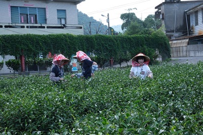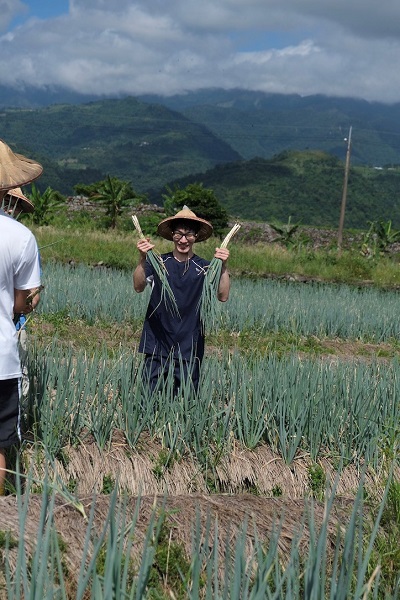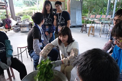 学外では、宜蘭地方で政府と大学が積極的に推進している地域振興の取り組みとして、日本の6次産業化に相当する「レジャー農業」である、茶葉とネギの生産・加工を見学しました。