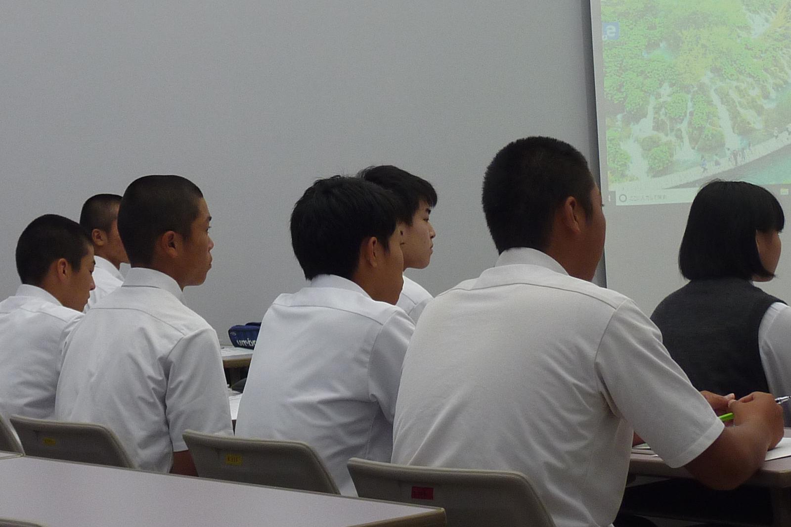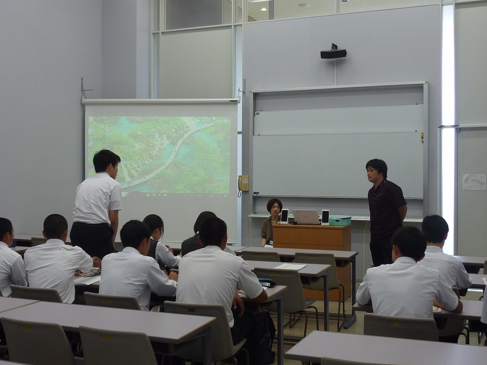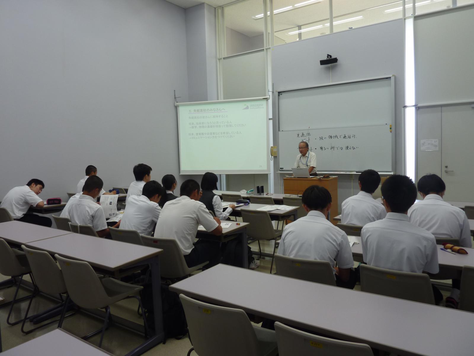 本荘キャンパスでは、システム科学技術学部の概要などについて説明を受けた後、角館高校の卒業生で経営システム工学科3年の高橋生真さんと懇談しました。高橋さんからは、高校時代に取り組んだ学習方法や県立大学での充実した大学生活についてお話いただき、高校生の皆さんは熱心にメモを取りながら先輩の話に耳を傾けていました。