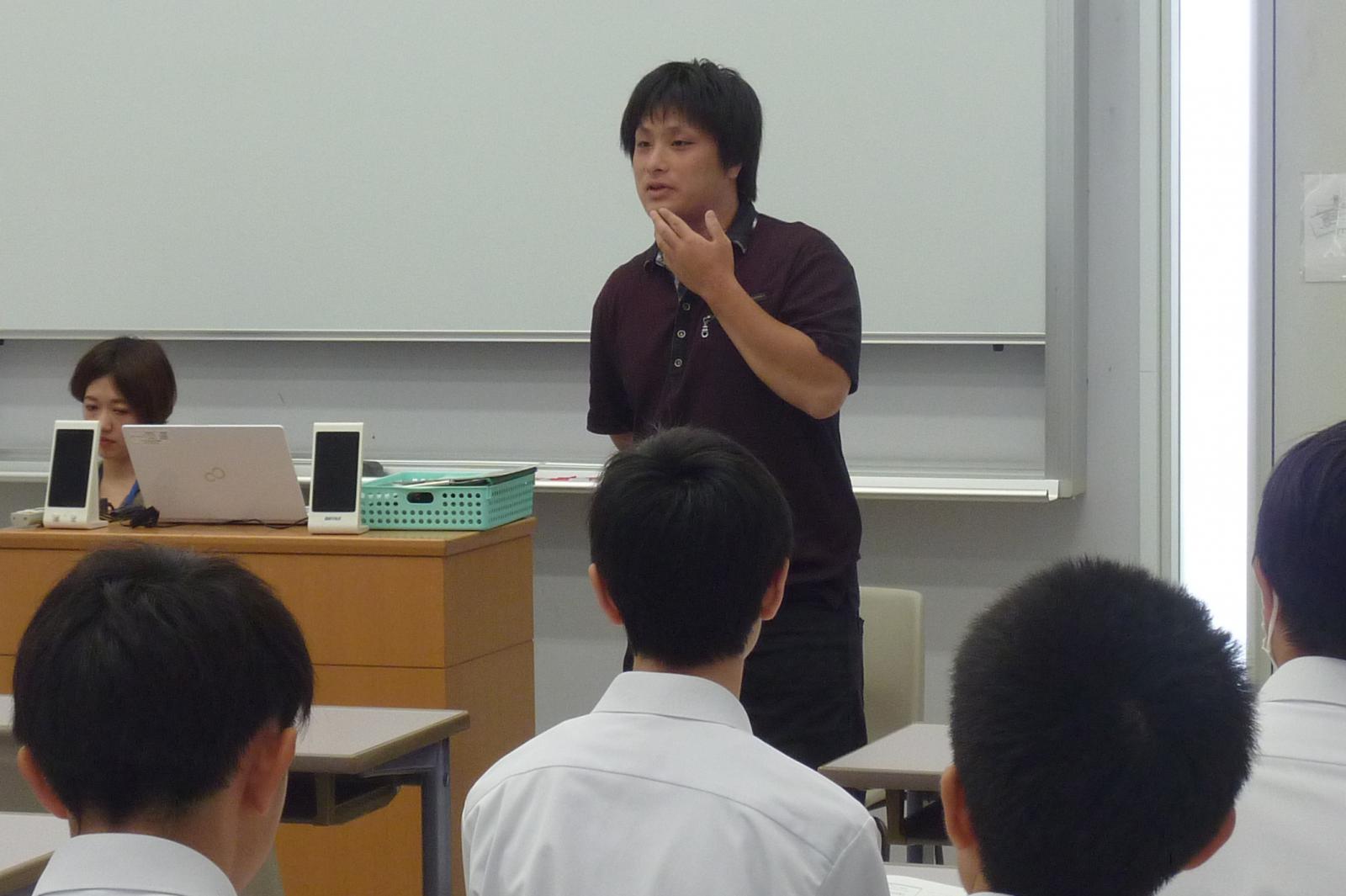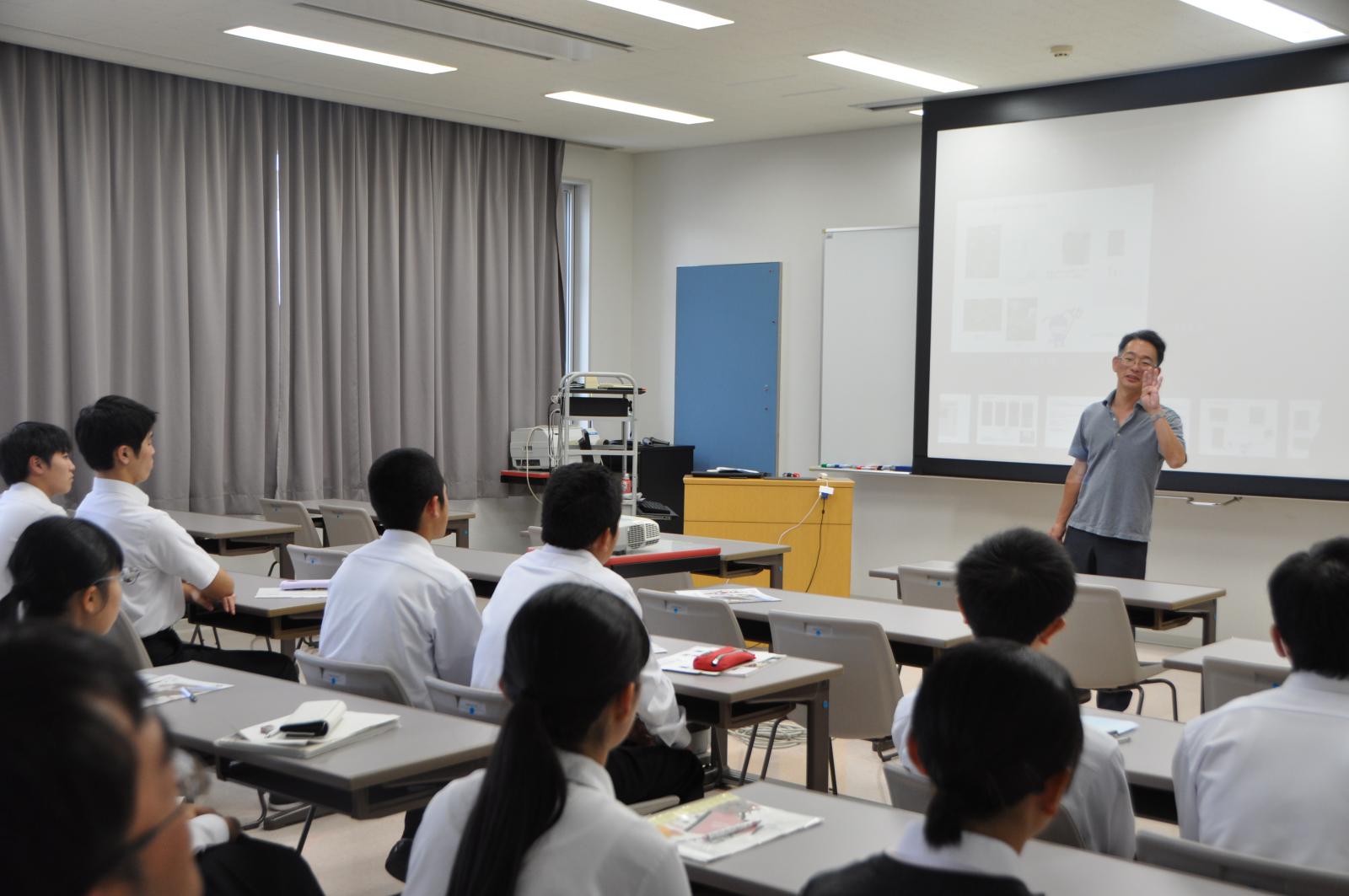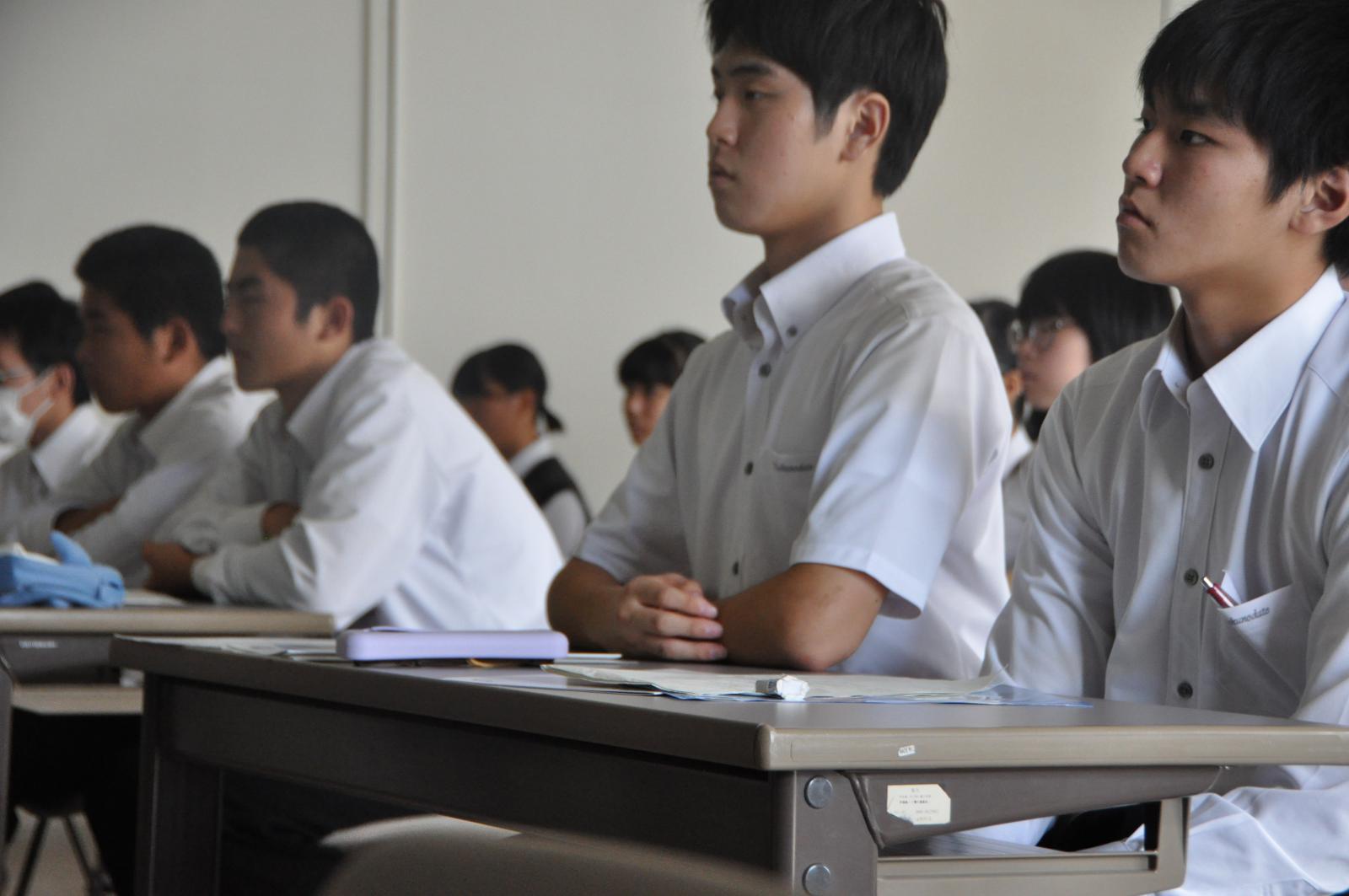本荘キャンパスでは、システム科学技術学部の概要などについて説明を受けた後、角館高校の卒業生で経営システム工学科3年の高橋生真さんと懇談しました。高橋さんからは、高校時代に取り組んだ学習方法や県立大学での充実した大学生活についてお話いただき、高校生の皆さんは熱心にメモを取りながら先輩の話に耳を傾けていました。