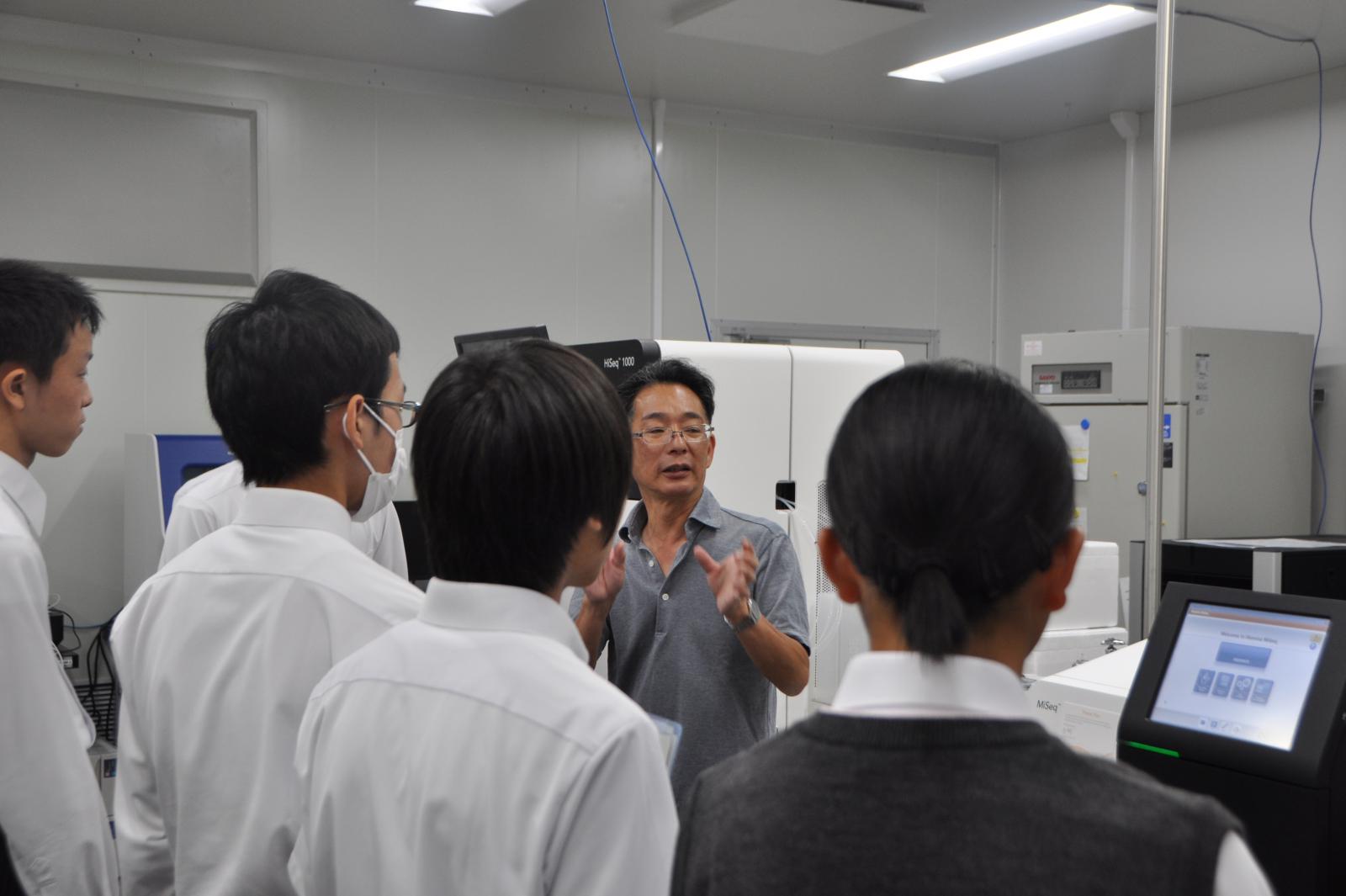 秋田キャンパスでは、生物資源科学部の概要などについて説明を受けた後、最先端のバイオテクノロジーを駆使して生命現象を解明するバイオテクノロジーセンター(生物資源科学部附属機関)の藤 晋一センター長より、センターの概要説明を受けた後、研究棟内を見学しました。