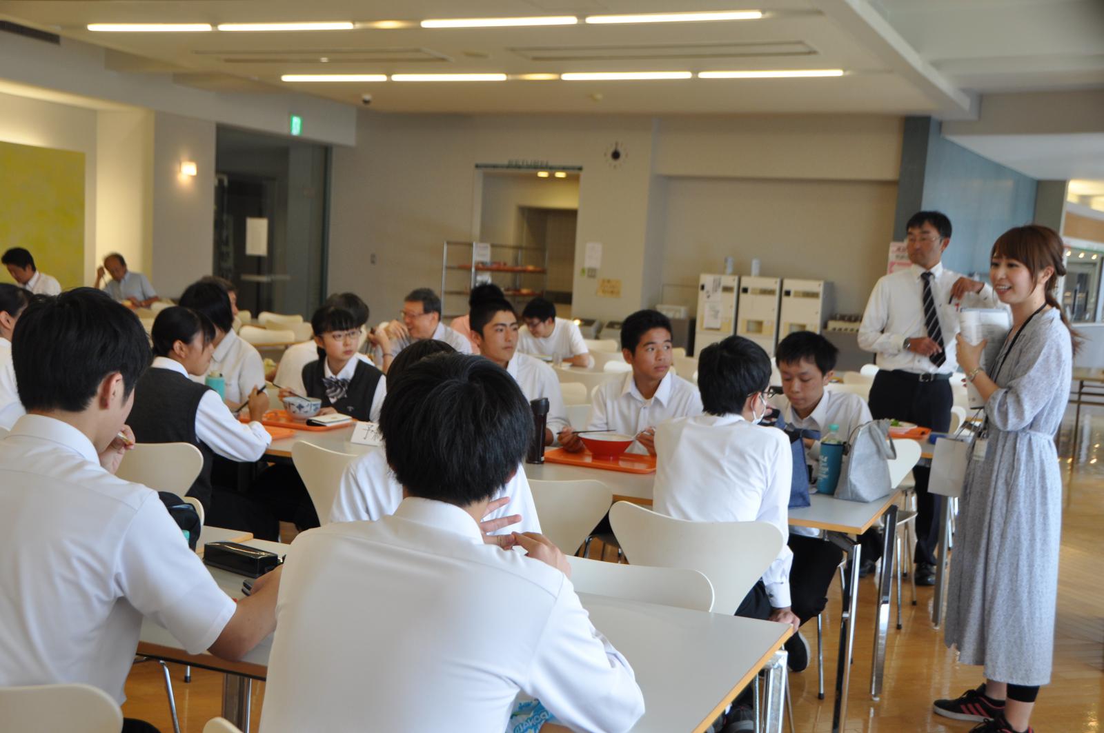 お昼は、大学生や教職員に交じってカフェテリアで楽しく学食&ランチ体験を行い、午後からは、講堂、体育館、トレーニングルーム、図書館、キャリア情報センター、学生ホール、野球場、陸上トラックなど、広大なキャンパスを見学いただきました。