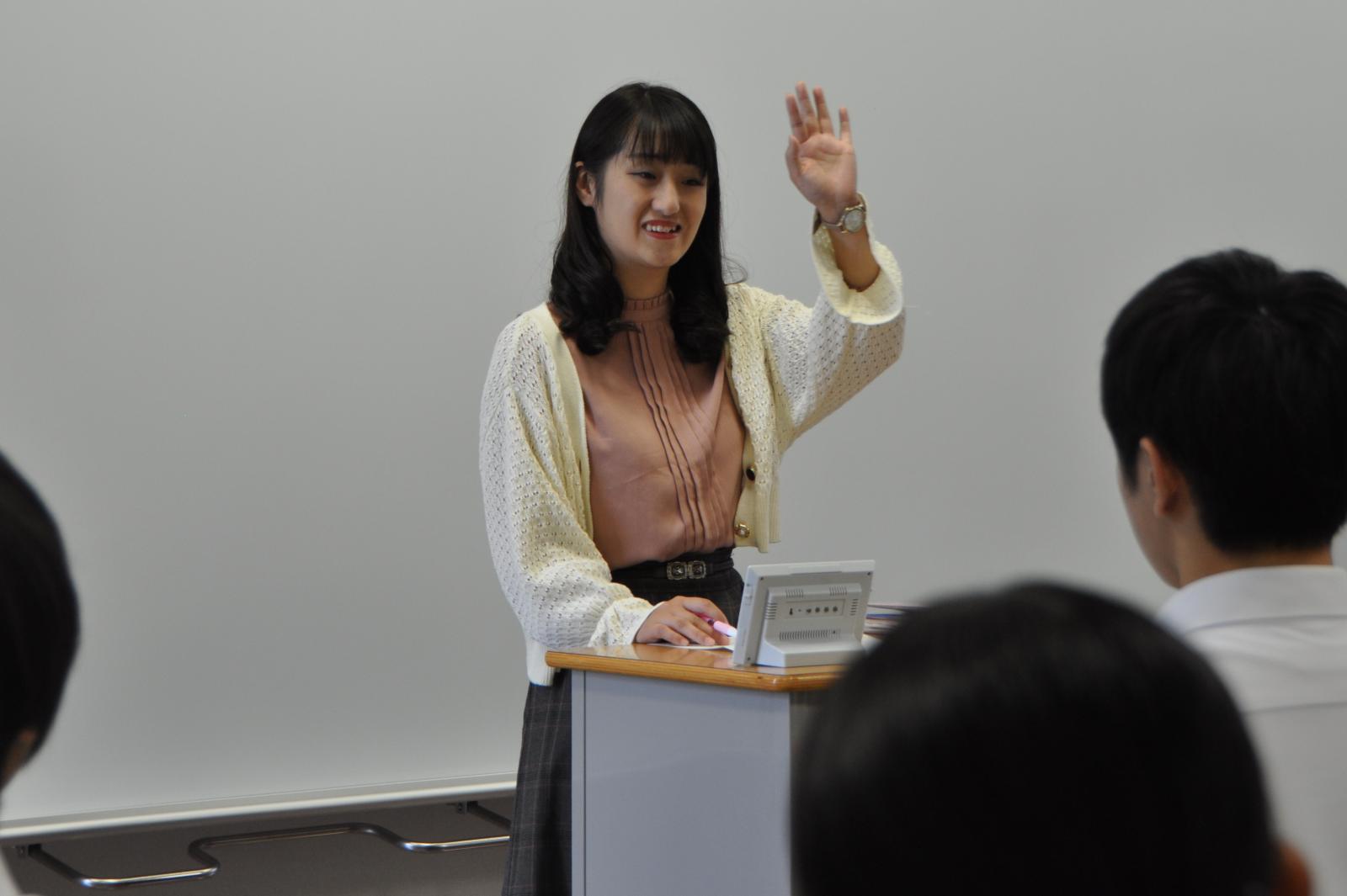 角館高校の卒業生 高橋生真さん(経営3年)と懇談