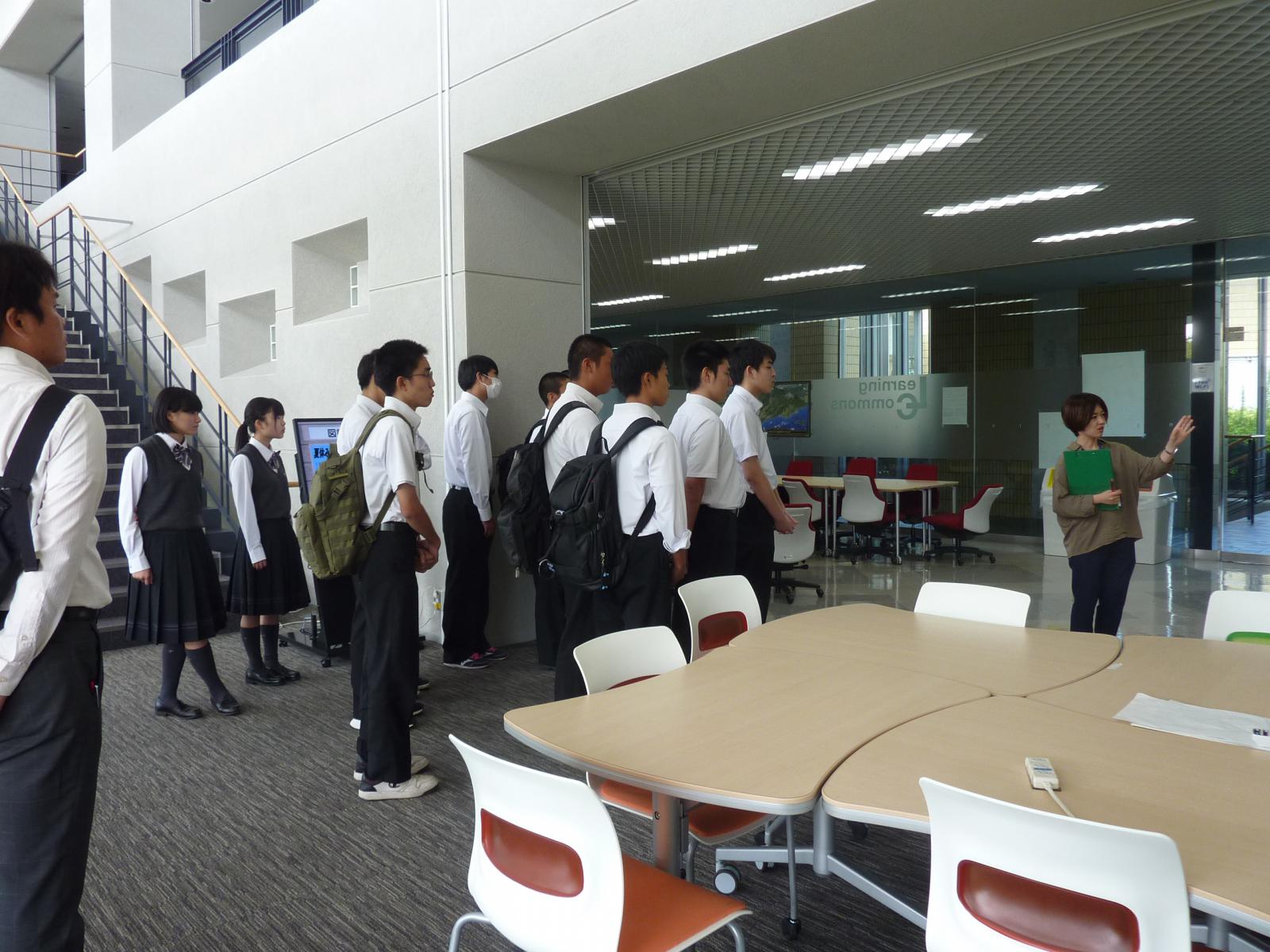 9月19日(木)、秋田県立角館高校の1年生11名が秋田キャンパス、13名が本荘キャンパスを見学しました。これは、角館高校の生徒さんが大学の学びや施設・設備等を知り、将来の進路について考え、学習意欲を高めることを目的に実施されたものです。