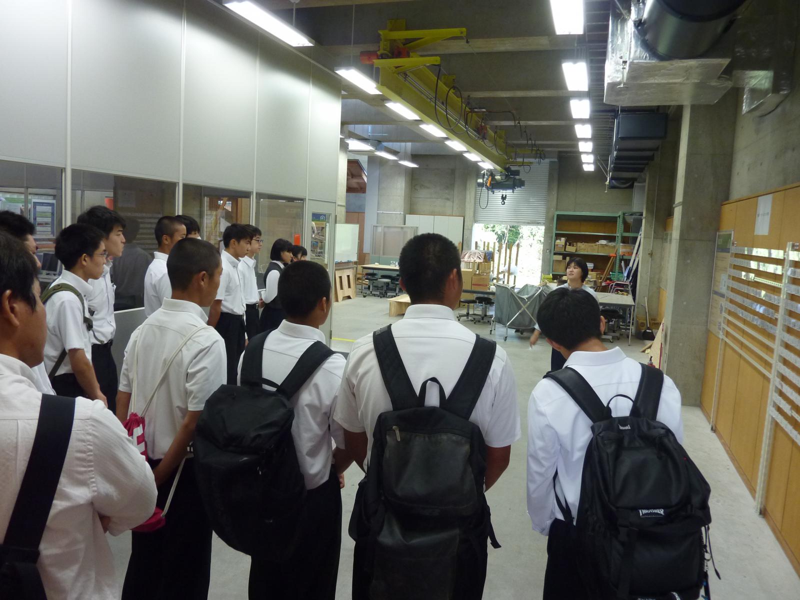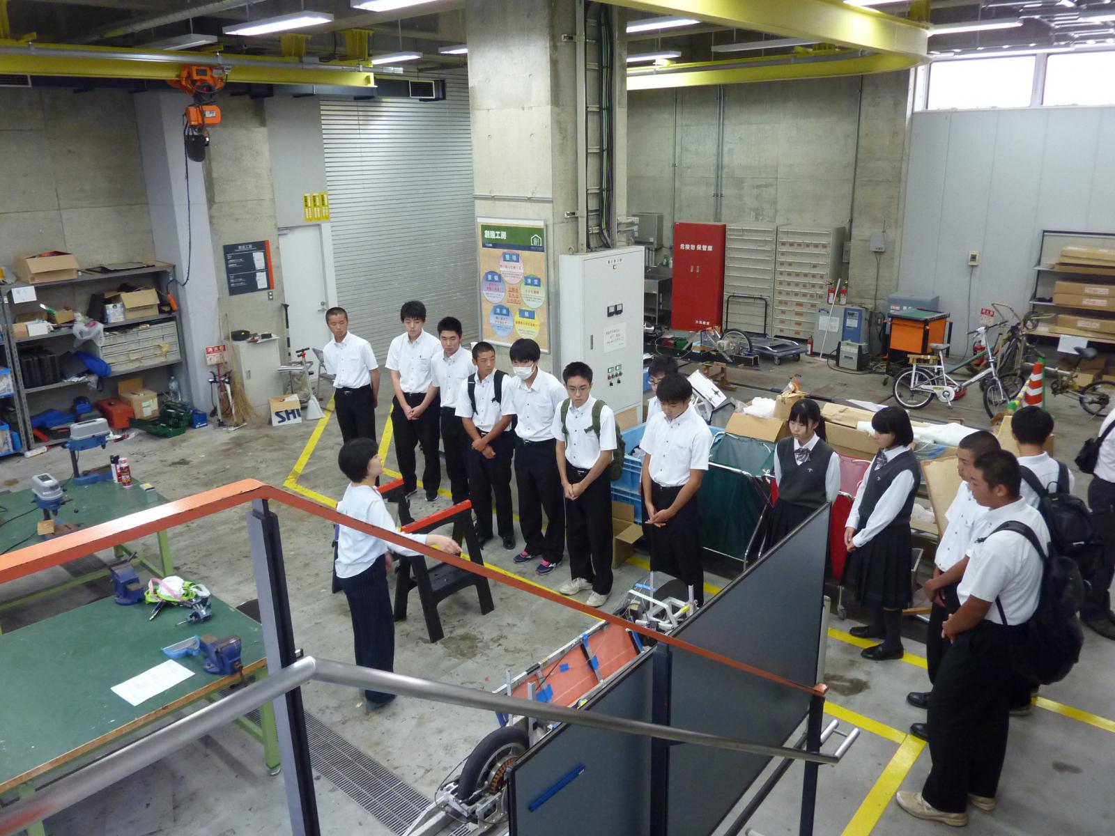 施設見学では、特別実験棟、創造工房など、システム科学技術学部の特長的な施設をじっくり見学いただきました。高校生の皆さんは、ハイセンスな外観で洗練された雰囲気を持つキャンパスに目を輝かせていました。