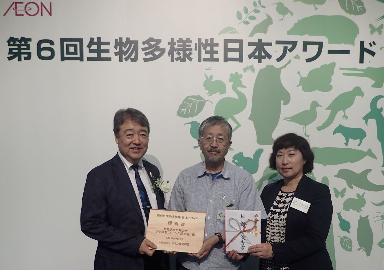 本学の森林科学研究室の蒔田 明史 教授(生物資源科学部生物環境科学科)が副会長を務めるボランティア団体「世界遺産白神山地ブナ林モニタリング調査会」が、公益財団法人イオン環境財団が主催する「生物多様性日本アワード」において優秀賞を受賞し、9月26日(土)、国際連合大学(東京都渋谷区)において、授賞式が開催されました。「生物多様性日本アワード」は、2010年に日本で開催された「生物多様性条約第10回締約国会議(COP10)」を契機に2009年に創設され、以来、2年に一度、生物多様性の保全、持続可能な利用、普及・啓発に関する活動を表彰しており、今年で6回目を迎えます。