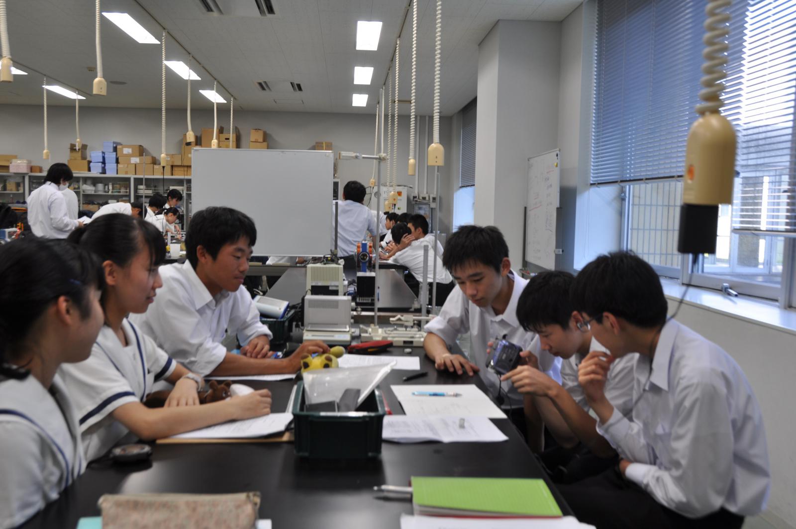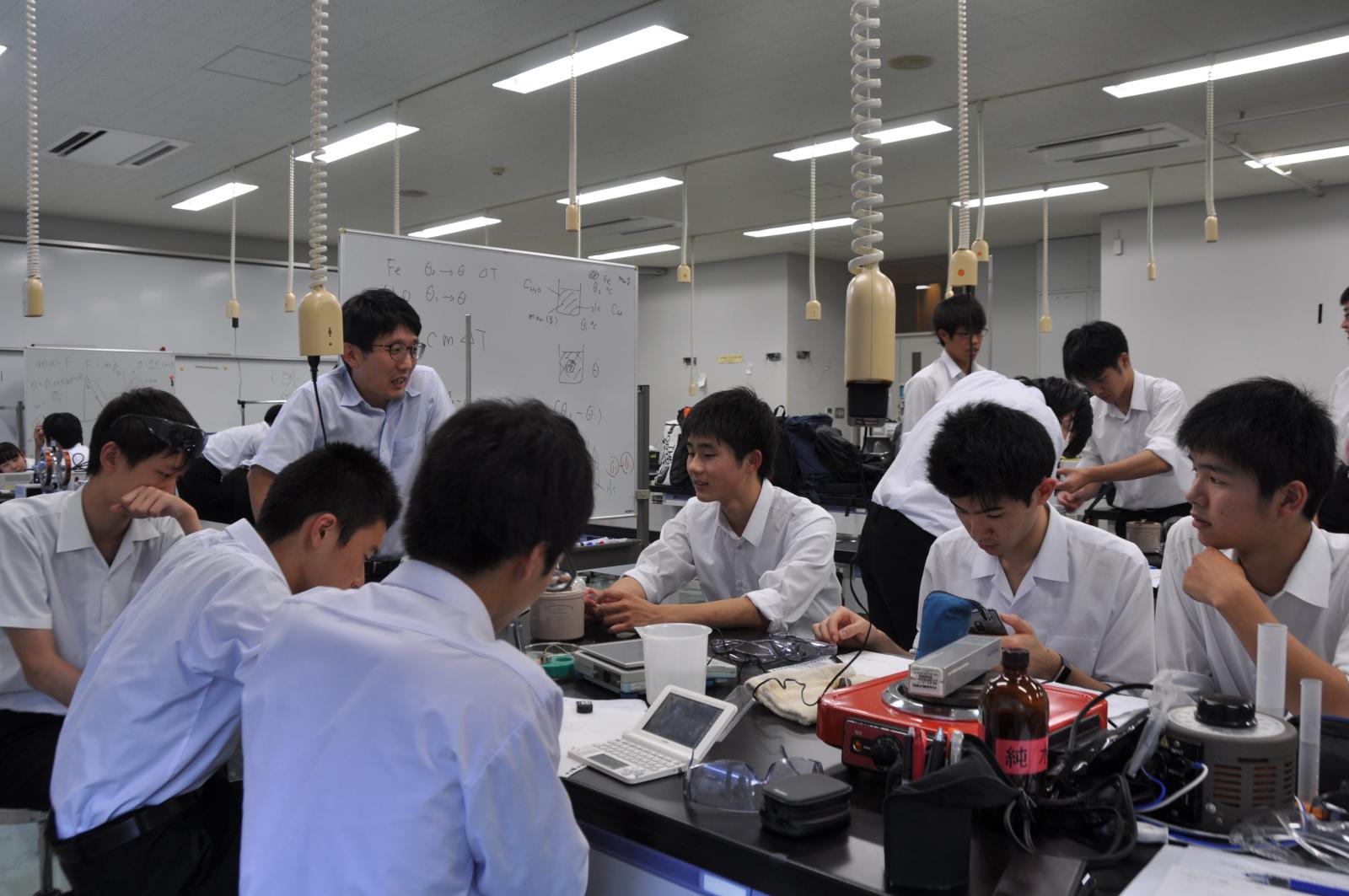 生徒たちは専門的な実験に興味津々の様子で、教員に積極的に質問したり、グループメンバーで相談したりと、熱心に取り組んでいました。