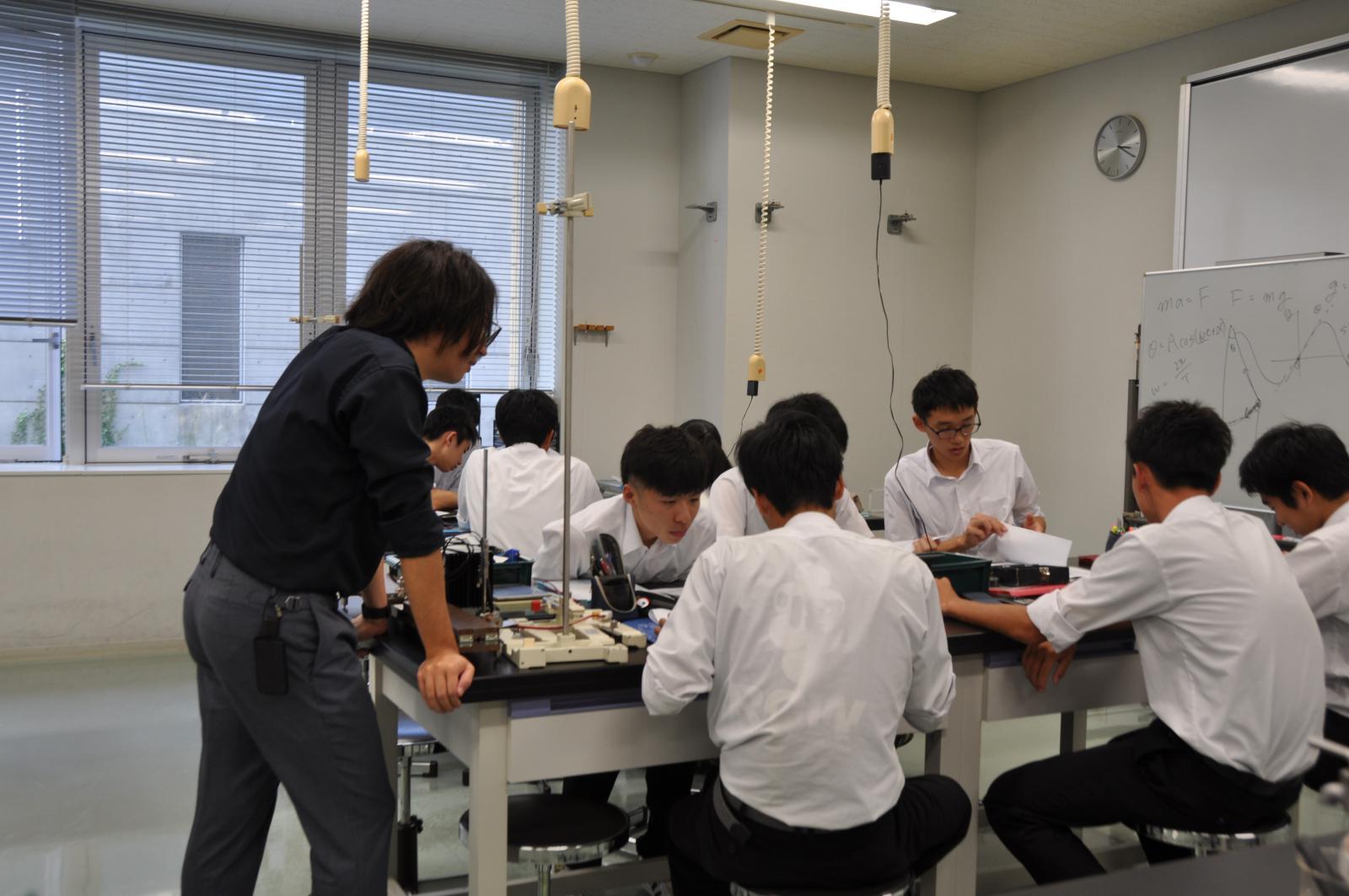 9月30日(月)、秋田県立本荘高校数理探究クラスの2年生34名を対象に、本荘キャンパスにて物理学に関する実験や講義を実施しました。今年度は「重力加速度の測定」、「固体の比熱の測定」、「音波の共振」の3テーマに分かれ、システム科学技術学部知能メカトロニクス学科の小宮山崇夫助教、伊東良太助教、秋元浩平助教を講師として、実験を行いました。