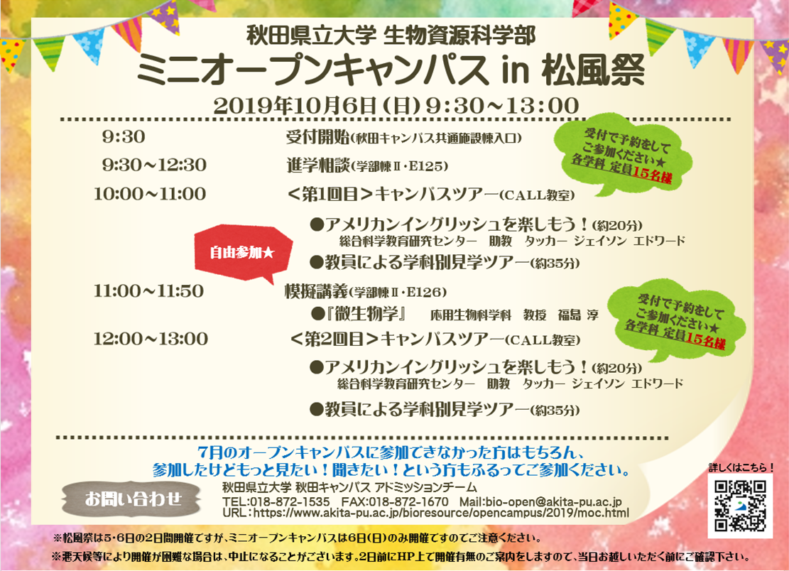 高校生の皆さんには、今回の訪問により、大学の学びや雰囲気を感じていただき、少しでも秋田県立大学に興味・関心を持っていただく機会となれば幸いです。雫石高校の皆さん、遠方からお越しいただき大変ありがとうございました。