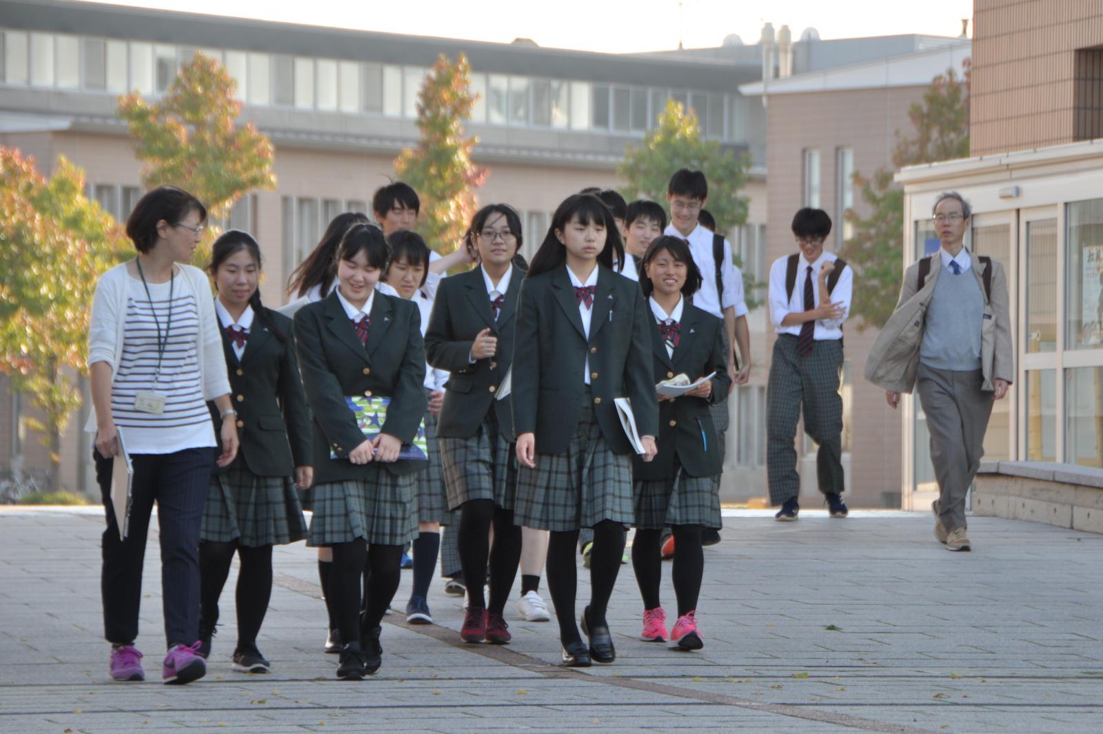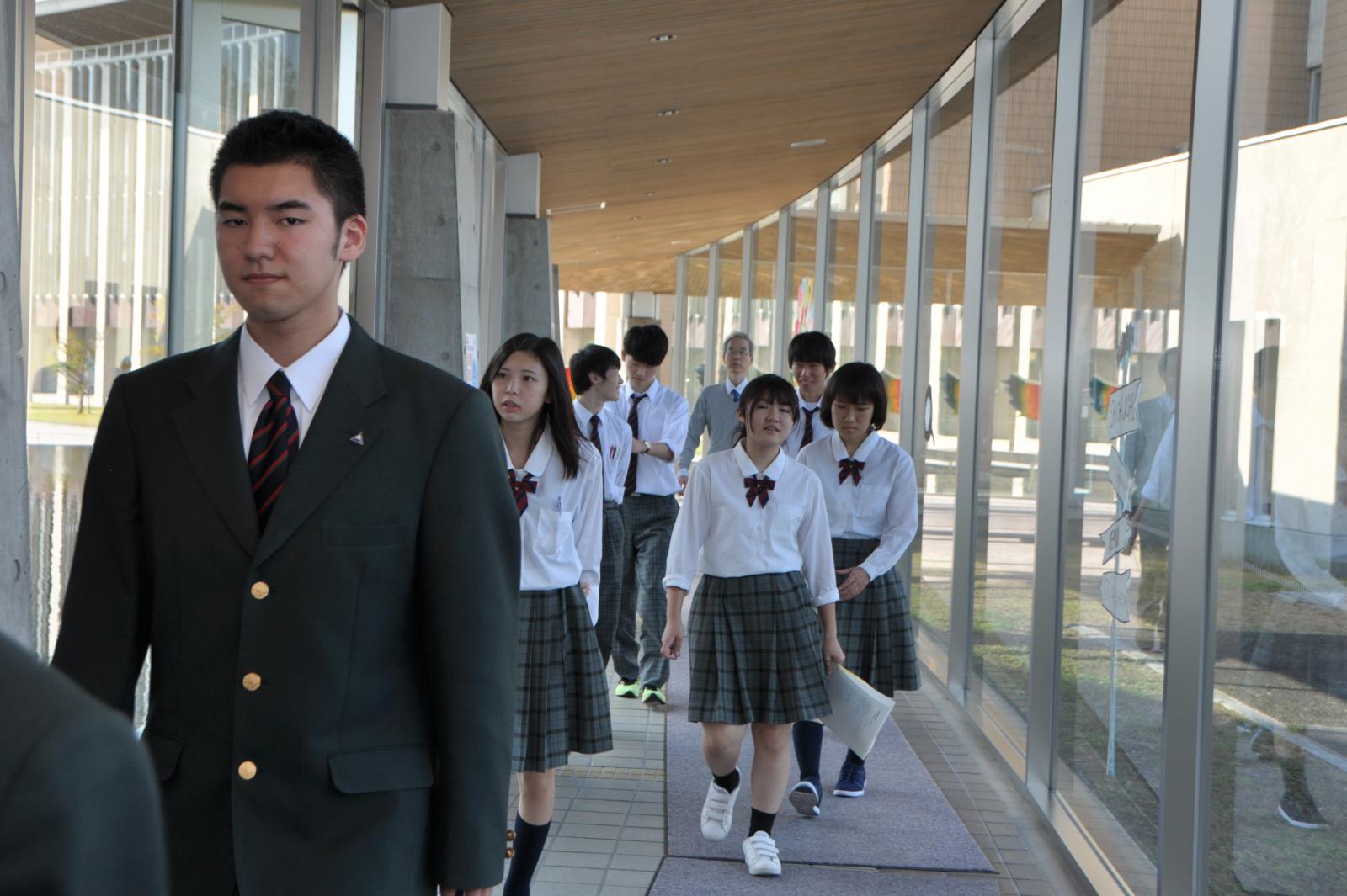 10月2日(水)、岩手県立雫石高校の2年生17名の生徒さんと引率教員2名が、秋田キャンパスを見学しました。これは、雫石高校の生徒さんが大学の学びや施設・設備等を知り、将来の進路について考え、学習意欲を高めることを目的とした、進路指導の一環として実施されたものです。秋田県立大学の概要、求める学生像、入学試験、就職状況、学生生活などについて説明を受けた後、2グループに分かれて、講堂、体育館、トレーニングルーム、図書館、キャリア情報センター、学生ホールなど、広大なキャンパスをじっくり見学いただきました。高校生の皆さんは、洗練された雰囲気を持つキャンパスに目を輝かせていました。