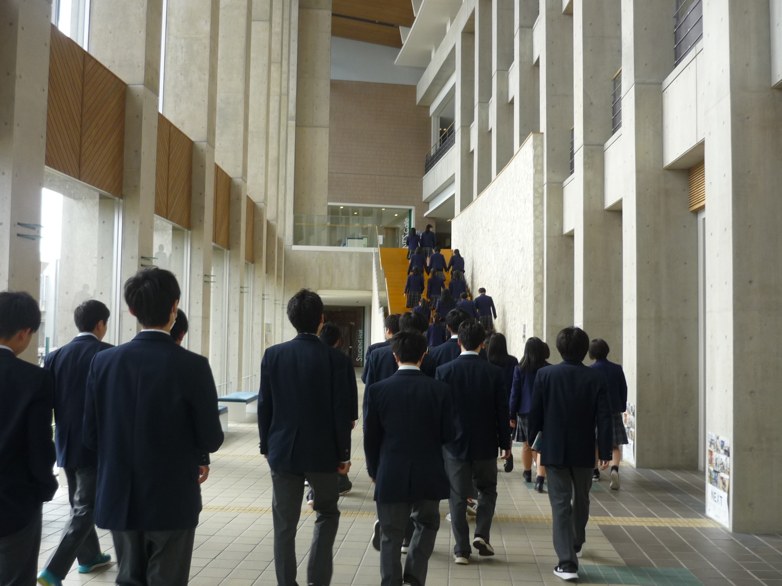 最後は、4グループに分かれ、各学部棟、(模擬講義を行った佐藤先生の研究室を訪れたグループもいました)、講堂、図書館、体育館、陸上競技場など、広々としたキャンパスをじっくり見学していただきました。