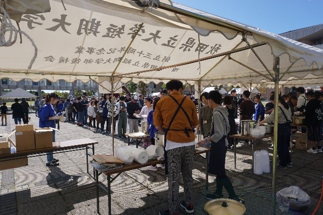 2日目は天気に恵まれ、1日目より多くの方にお越しいただきました。毎年好評の鍋企画にも長蛇の列が!料理同好会が考案した秋田の旬の野菜・伝統味噌をふんだんに使った「秋麗シチュー鍋」に舌鼓を打ちました。