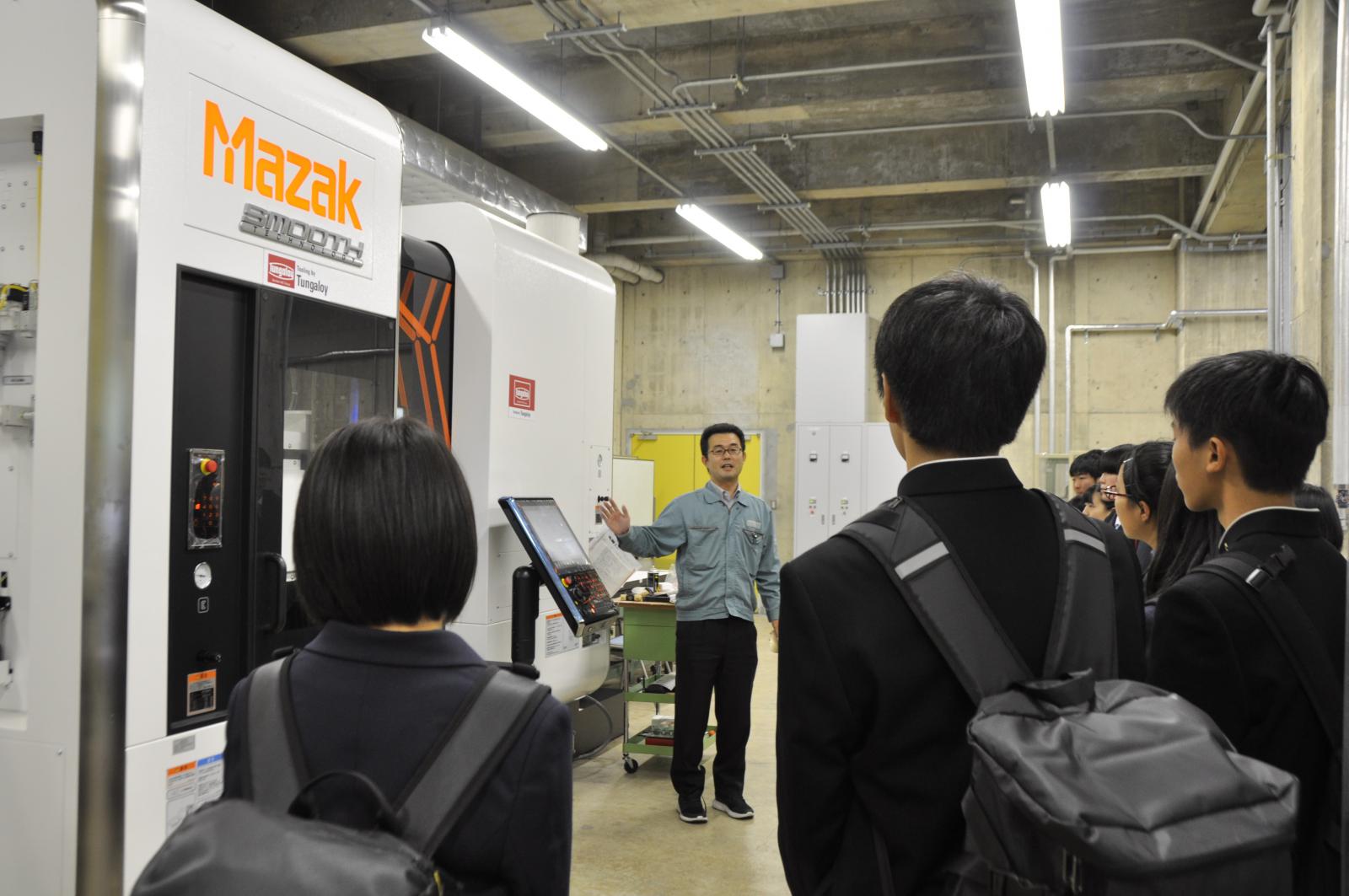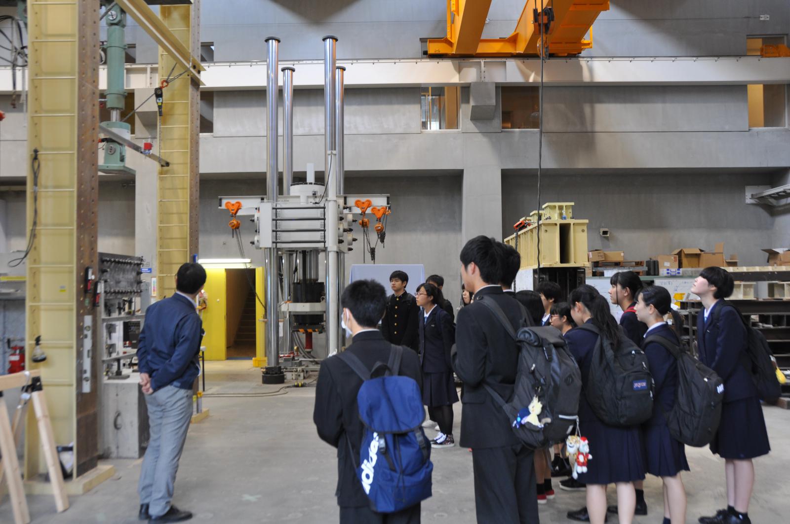 施設見学では、機械工学科の加工工場や建築環境システム学科の建築構造実験室など、工学系のシステム科学技術学部ならではの施設を見学いただきました。音の響き方が違う「多目的音響実験室」や、電波の届かない「電波無教室」では、普段の環境との違いに驚きの声が上がりました。