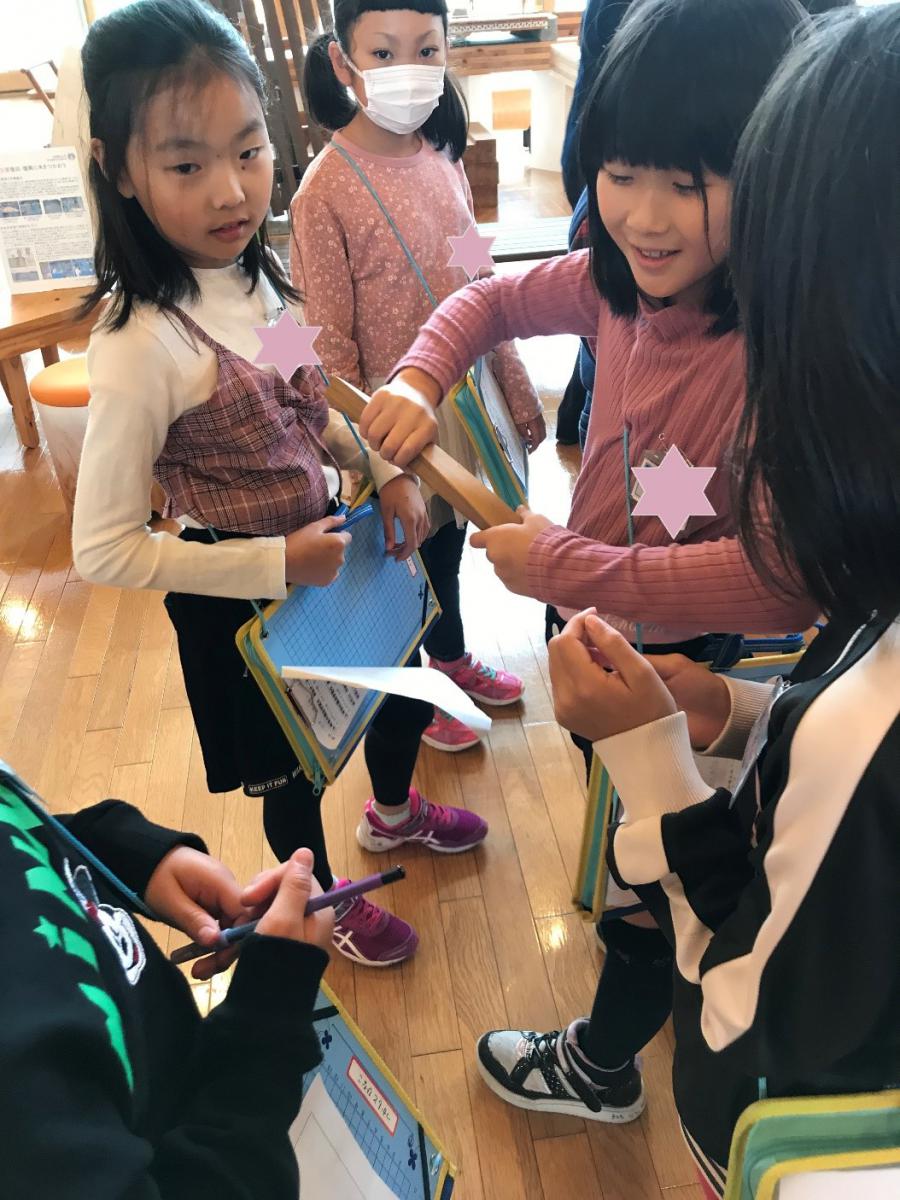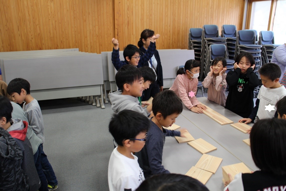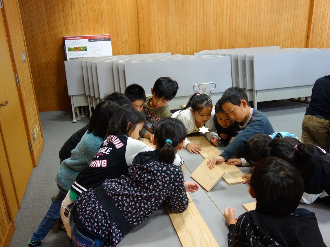 また、能代市内に木橋やウッドチップ舗装の歩道があることを説明すると、「知ってるよー」の声が沢山聞こえ、さすが木都の小学生と講師も驚いていました。