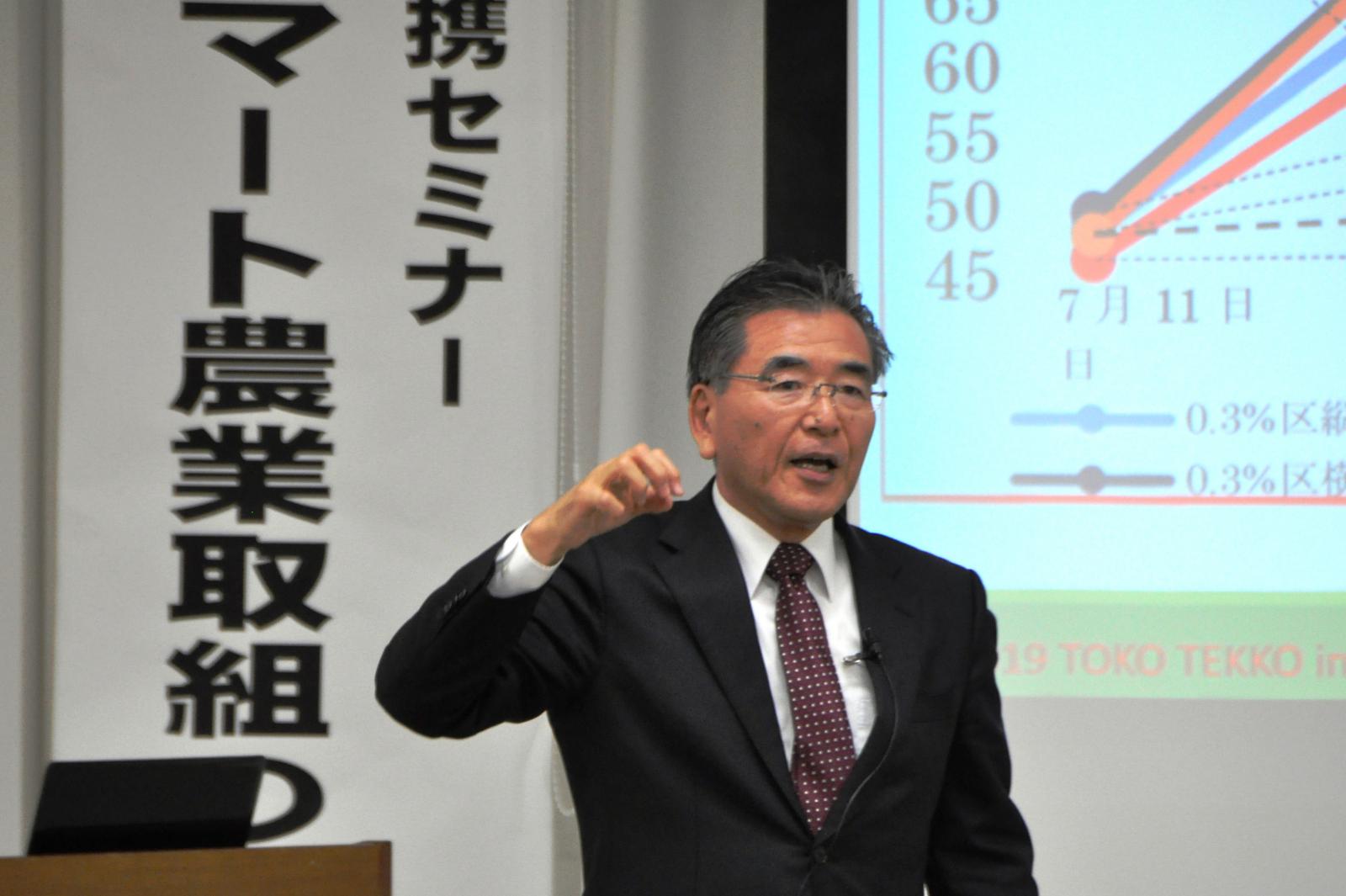 本セミナーの司会を務めた生物資源科学部の金田 吉弘 学部長・教授は、「スマート農業の取り組みは、農業が抱える高齢化や人手不足等の課題を解決する大きな鍵となっている。AI、IoTなどの先端技術を活用したスマート農業技術の社会実装が加速化し、本県農業の発展につなげていきたい。」とセミナーを締めくくりました。