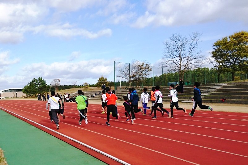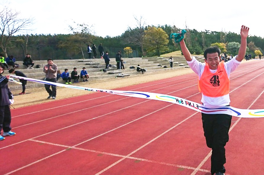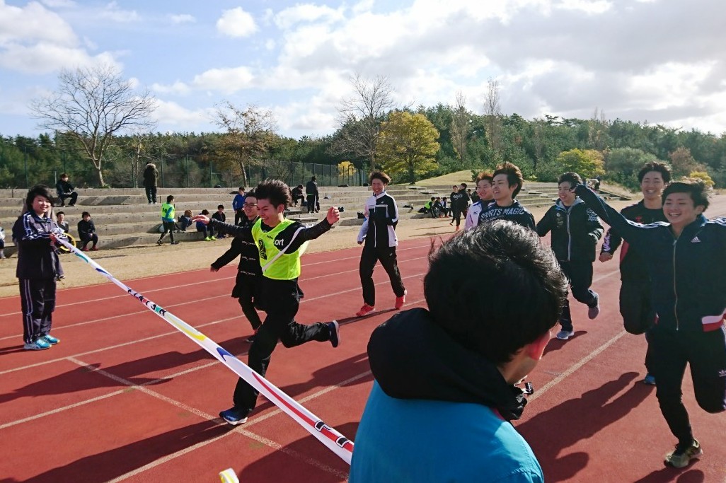 11月17日、秋田キャンパス陸上競技場において、陸上サークル(顧問:水野 幸一 准教授_応用生物科学科)が主催し、「第一回秋田県立大学ぷち駅伝大会」を開催しました。本大会は、学生、教職員そのご家族など、合計19チーム約100人のランナーが参加し、今回初めて開催されました。当日は、秋田キャンパスの陸上競技場を発着点に、一周約1.4kmの周回特設コースを設定し、1チーム5周(合計7km)を最大5名でリレーし健脚を競いました。レースは1周する間に順位が頻繁に入れ替わる見応えのある展開になりましたが、スタートから先頭集団につけ、快調・ハイペースでとばし、圧倒的なスピードを魅せつけた陸上サークルが見事優勝を勝ち取りました。