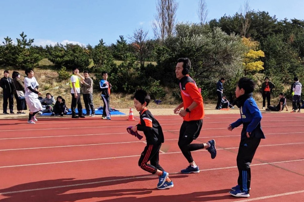 激走する早川 敦准教授(生物環境科学科)ご家族チーム
