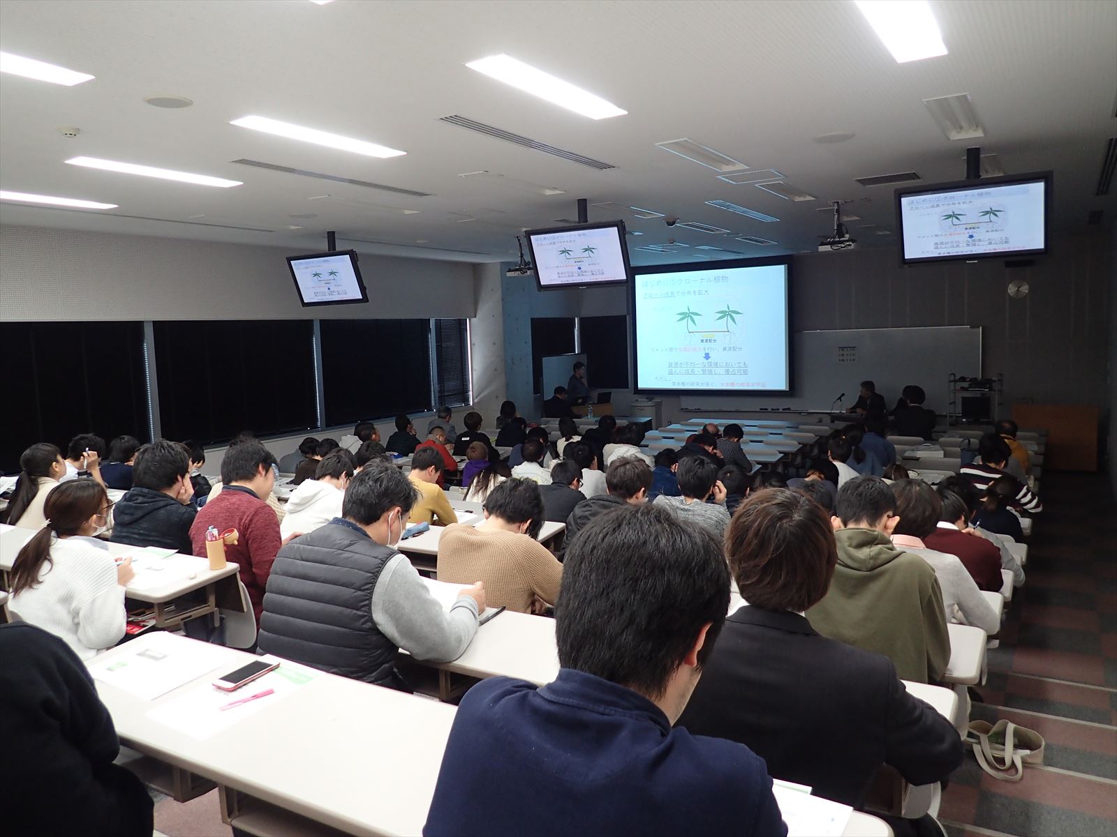 12月9日(月)に、生物資源科学部生物環境科学科の各研究室に所属する大学院生(博士課程前期1年)による中間報告会を開催しました。中間報告会には、学科の教員・学生を中心に90名超が参加しました。6名の院生が自分の修士論文研究について、研究の背景、方法、現在の進捗状況及び今後の計画等について発表しました。