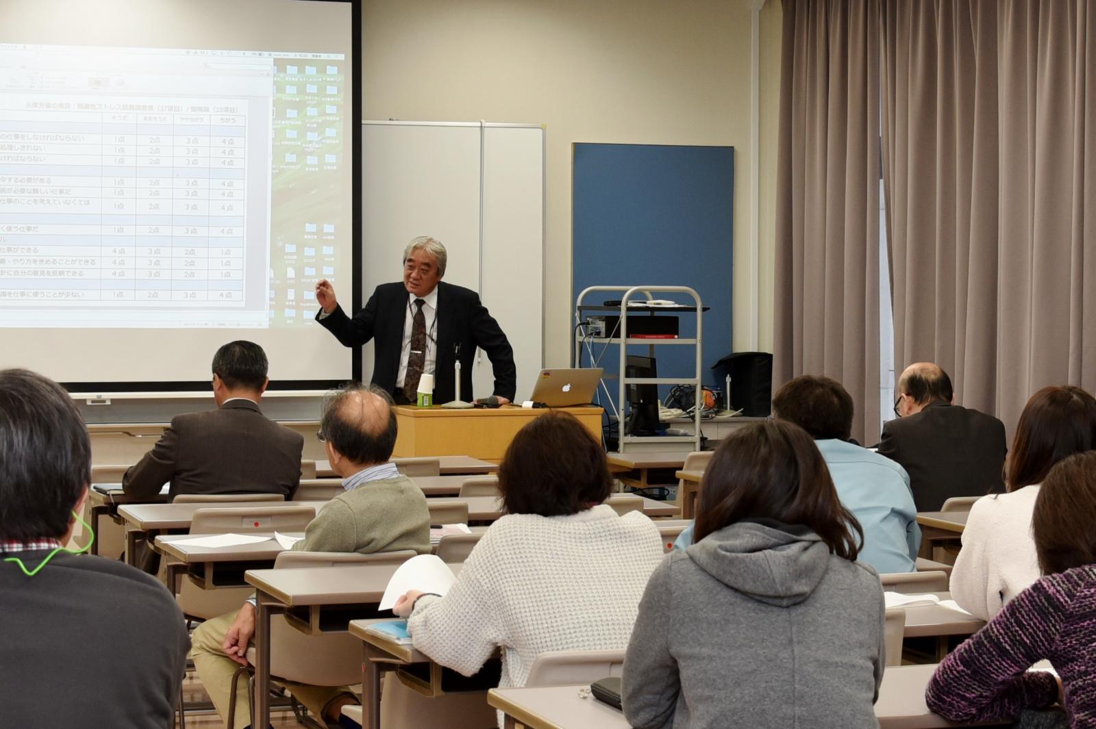 1月21日(火)、秋田キャンパスにおいて、恒例の産業医による教職員向けの安全講習会が開催されました。今回の安全講習会は、秋田厚生医療センター副院長である、産業医の齊藤先生により、『ストレスチェックについて』と題してお話いただき、教職員が毎年受診しているストレスチェックの目的と仕組みについて改めて紹介され、ストレスがメンタルヘルスに与える影響を理解して、適切にケアすることの大切さを、実例を交えて教えていただきました。