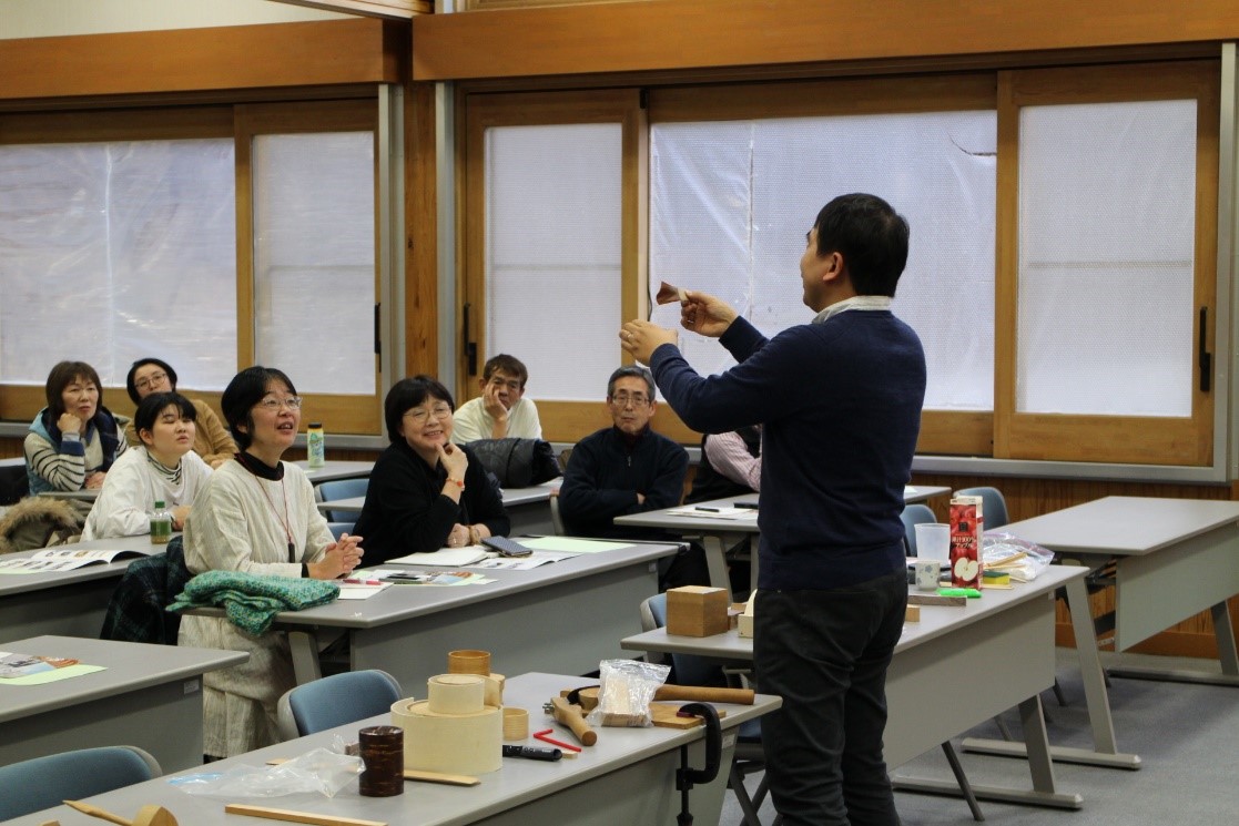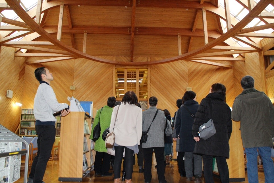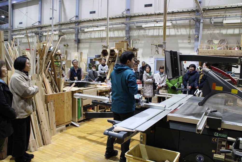 1月24日(金)、由利本荘市の「鳥海山木のおもちゃ美術館」の職員25名が、木材高度加工研究所を見学しました。鳥海山木のおもちゃ美術館は、これまで12万人を超える来館者があり、今後もたくさんのお客様に木の良さを伝えるための職員研修としてお見えになったものです。
