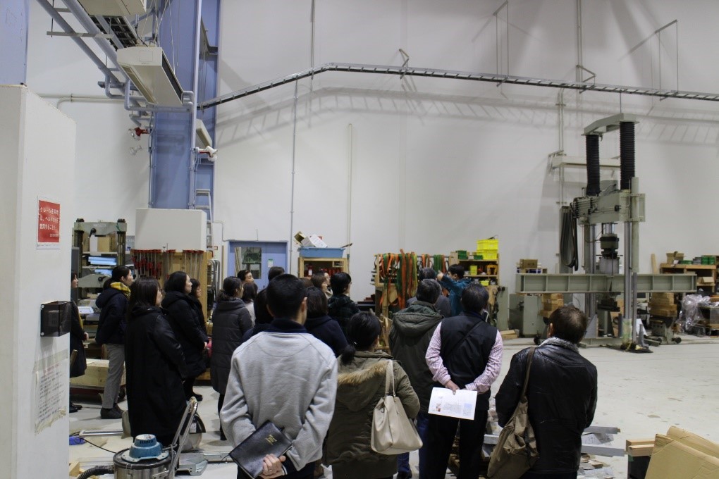 南試験棟では、壁や柱の強度試験を行う装置について、大きさを体感いただき、その役割も理解いただきました。
