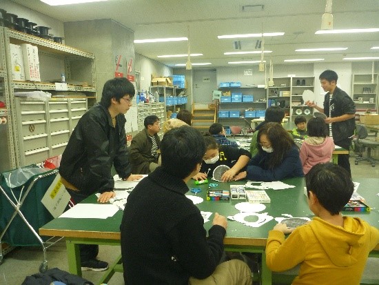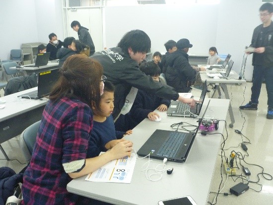 1月26日(日)、本荘キャンパスにて「ミニミニ科学教室」が開催されました。このイベントは本学の教員と学生スタッフが講師を務めるもので、南内越公民館が主催するホップ・ステップ・キャンパス(ミニかまくらのイベント)と連動しており、参加した子供たちは科学に親しんだり、凧揚げをしたり、お昼から夜まで楽しめるイベントになっています。ミニミニ科学教室は、学生が先生となり、こういう実験なら子供たちが「不思議だな」、「楽しいな」と思うのではないかと、毎年、試行錯誤を繰り返しながら実施している科学教室です。今年は、「自動改札機のしくみについて触れてみよう」、「ロボットプログラミングを体験してみよう」、「プログラミングを通して自動販売機を理解しよう」、「星座盤をつくろう」の4つのテーマで授業を行いました。4つのテーマのうち「ロボットプログラミングを体験してみよう」は本学の学生自主研究制度を利用して行った研究をもとに実施し、その成果を活かして子どもたちへ指導を行いました。→自主研究の成果は秋田県立大学機関リポジトリで発表されています。