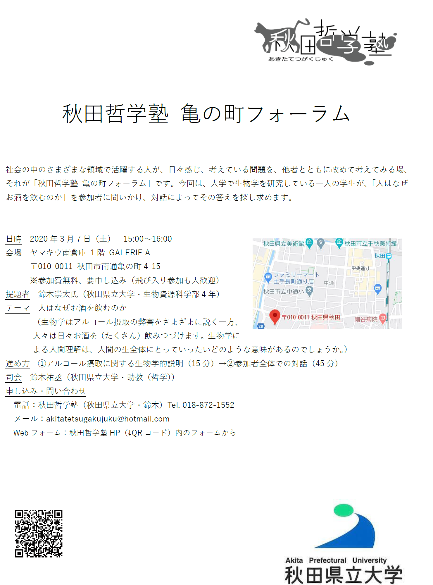 「秋田哲学塾 亀の町フォーラム」を開催します
