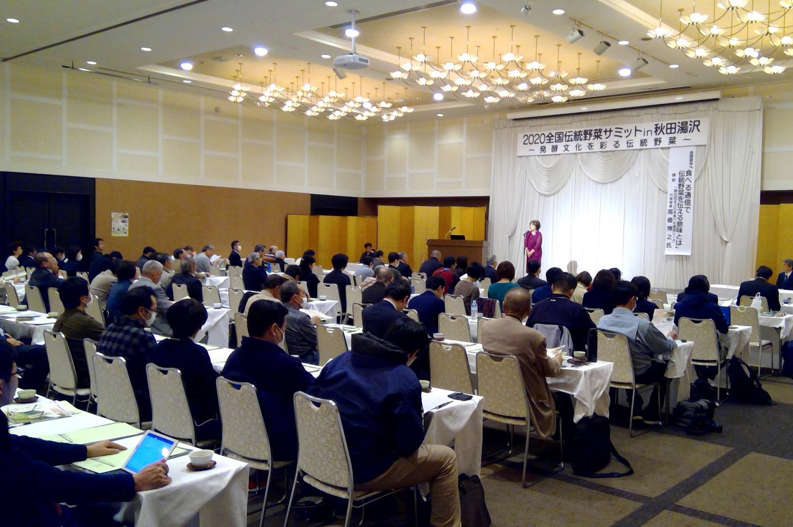 2月20日(木)~21日(金)の2日間、湯沢市(湯沢グランドホテルほか)で、「発酵文化を彩る伝統野菜」をテーマに『2020全国伝統野菜サミットin 秋田湯沢』が開催されました。本イベントは、秋田県立大学のほか、秋田県・湯沢市・JAこまち・あきた郷土作物研究会が実行委員会を組織し、秋田県内の伝統野菜の認知度向上と食品関連産業の活性化を図ることを目的に開催され、当日は、全国各地から180人の参集を得て盛大に開催されました。