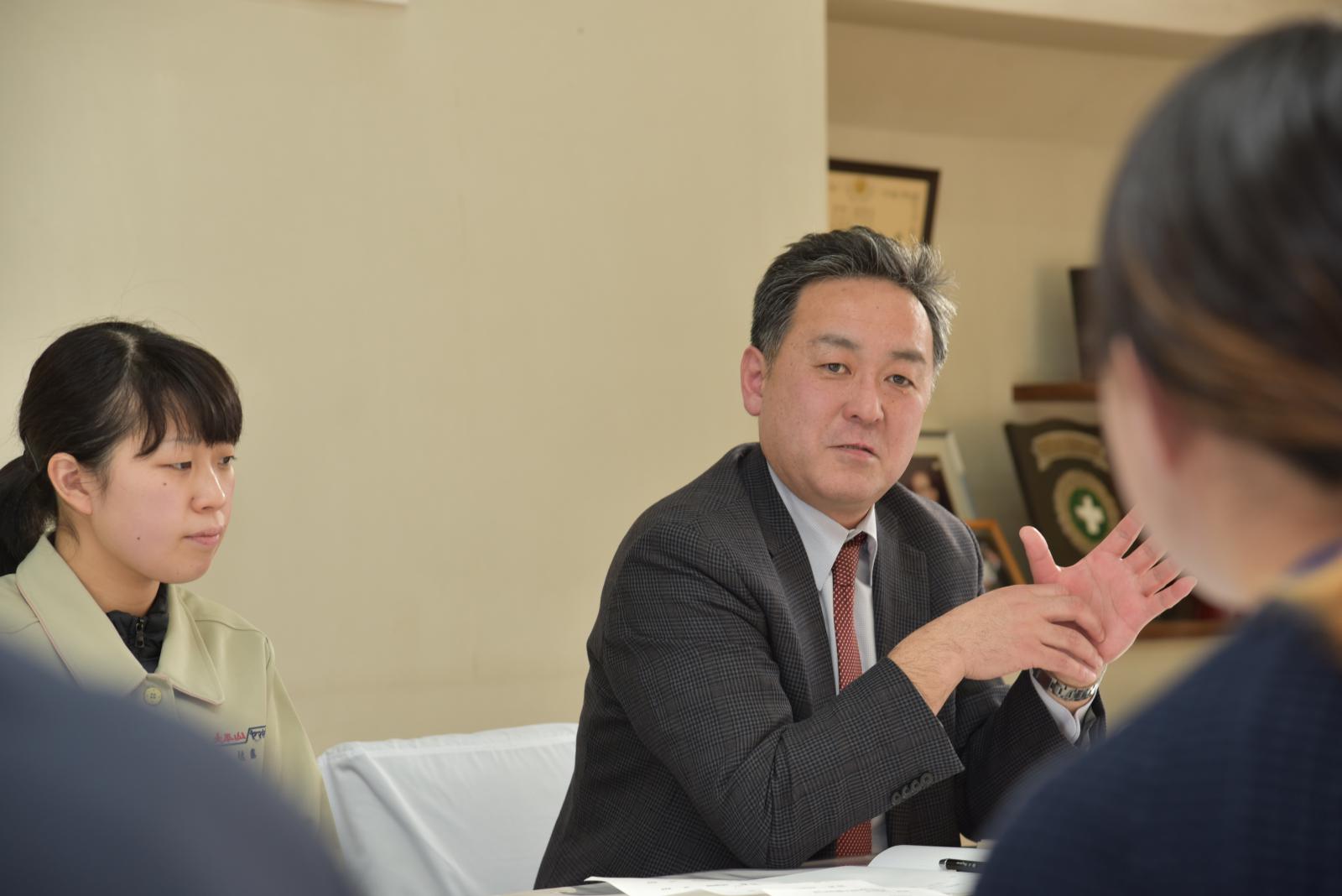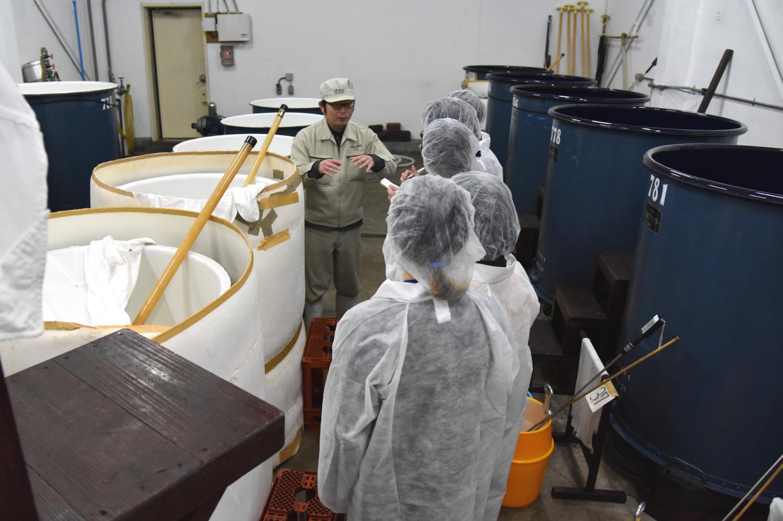 今回は、会社概要の説明、酒造りの「酒類課」と味噌・醤油製造の「食品課」それぞれの工場見学、経営者講話、OG講話、意見交換等のプログラムで実施しました。