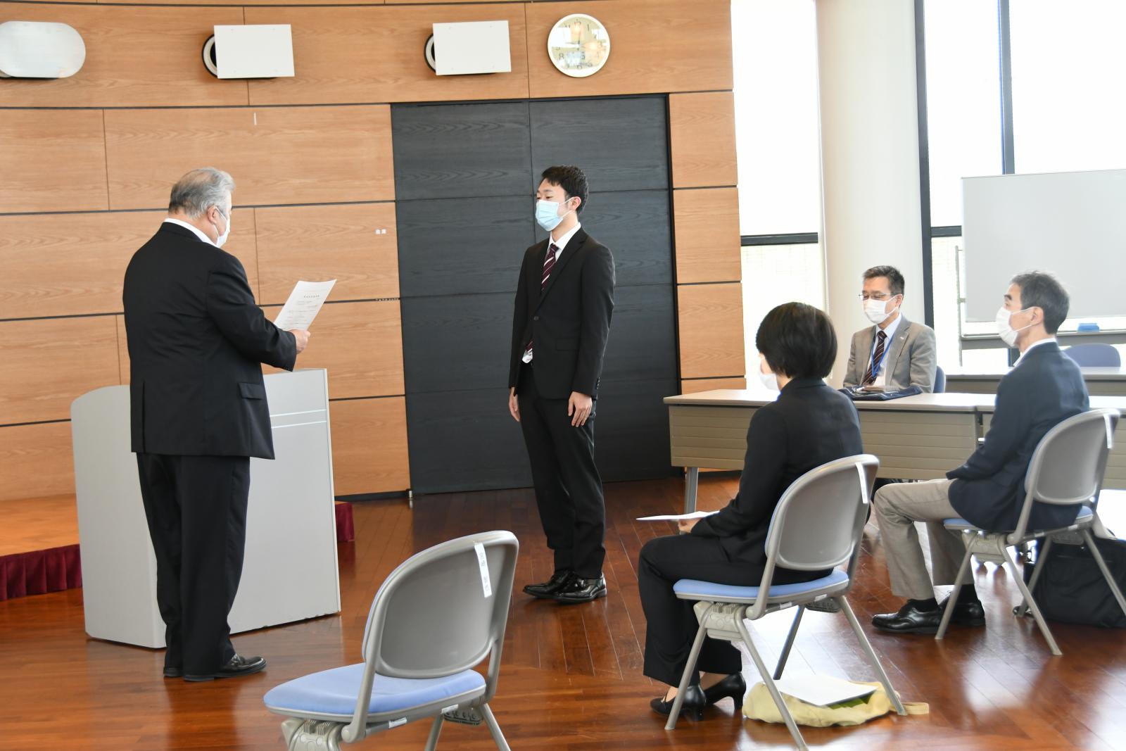 本学教員と学生が本荘由利産学振興財団からの助成を受けることが決定し、令和2年7月13日に助成決定通知書交付式が開催されました。本助成事業は、研究のさらなる振興や国際交流などを目的とし、本学内から対象となる研究を広く募集するものです。今年度は、教員からはシステム科学技術学部情報工学科の飯田一朗教授、学生からは経営システム工学専攻2年の須藤百香さん、共同ライフサイクルデザイン工学専攻2年の宮崎智也さんの計3名が助成対象として選ばれました。なお、国際交流に関する助成については昨今の情勢を踏まえ、現時点では助成事業の募集を保留しているとのことです。