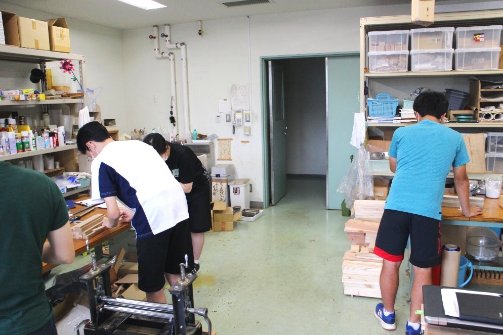 7月29日(水)~30日(木)、秋田県立能代高等学校の2年生3名が木材高度加工研究所でインターンシップ体験をしました。これは、生徒さんが進路選択や今後の学習活動の動機付けと、成長の機会を得ることを目的に実施されたものです。講師の足立幸司准教授より研究所の仕事や、森林資源の活用と資源の循環などの講義を受けたあと、作業体験を行いました。