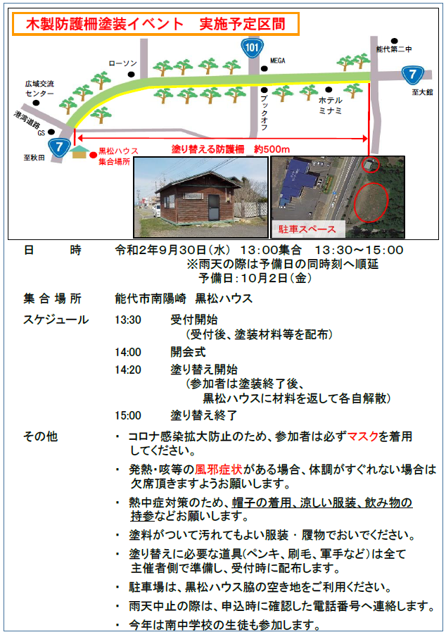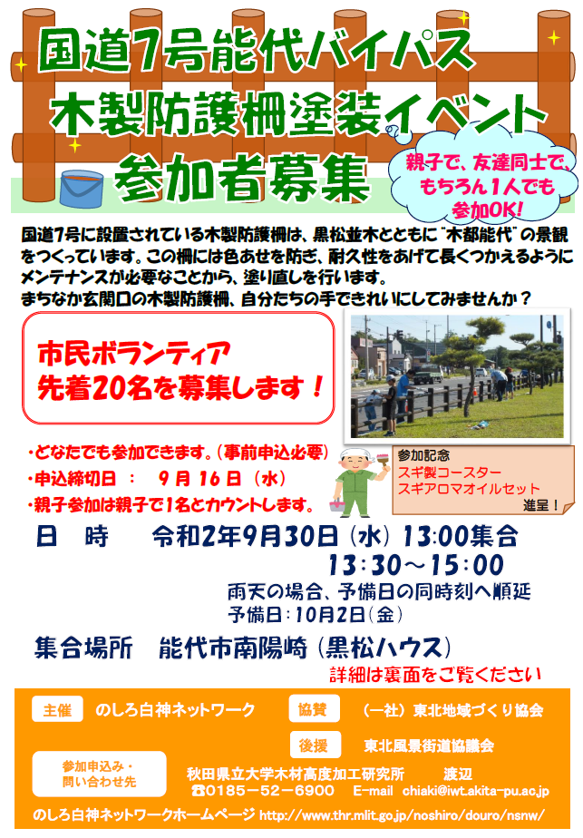 ★国道7号能代バイパス木製防護柵塗装イベント(※参加申込:9月16日まで)