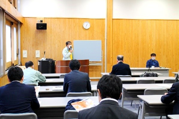 見学は、木高研の研究や企業との連携、また木高研と併設する秋田県木材加工推進機構(以下、「推進機構」)の取り組みなどの情報を収集するため来所されたものです。