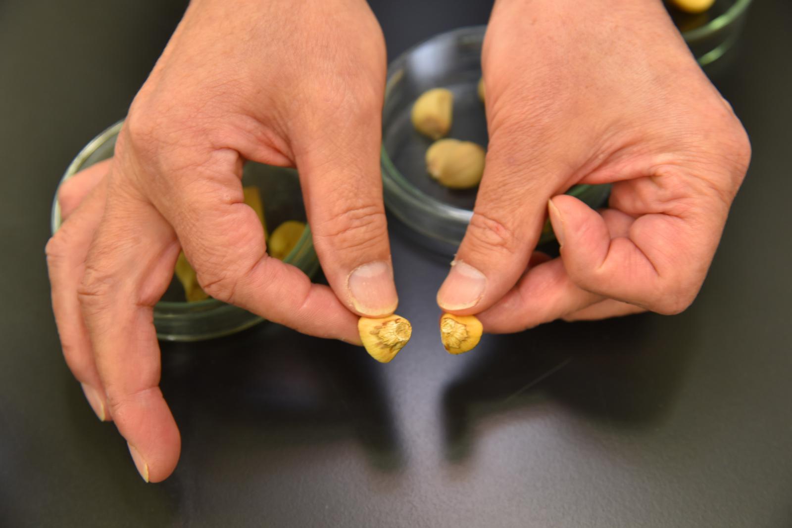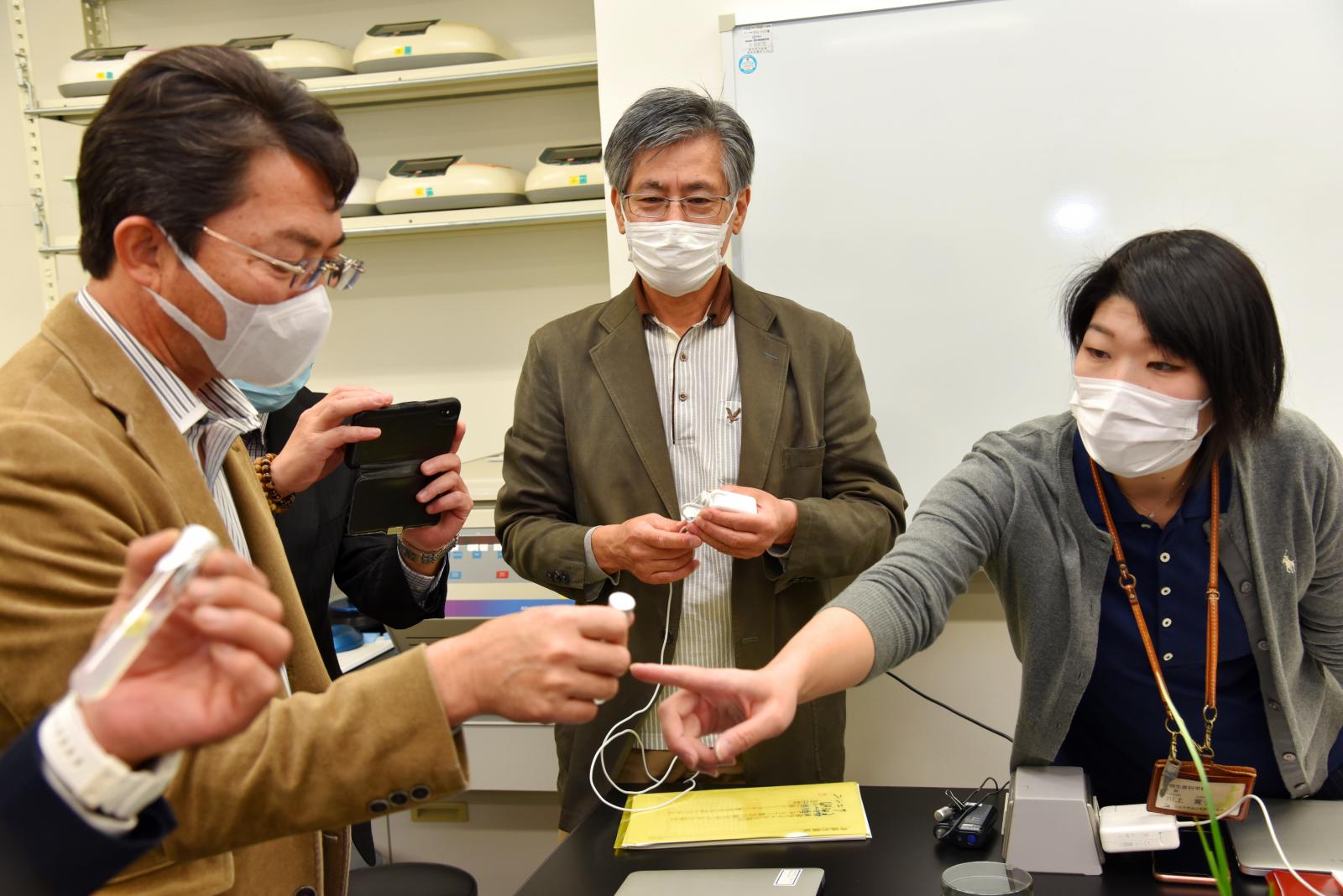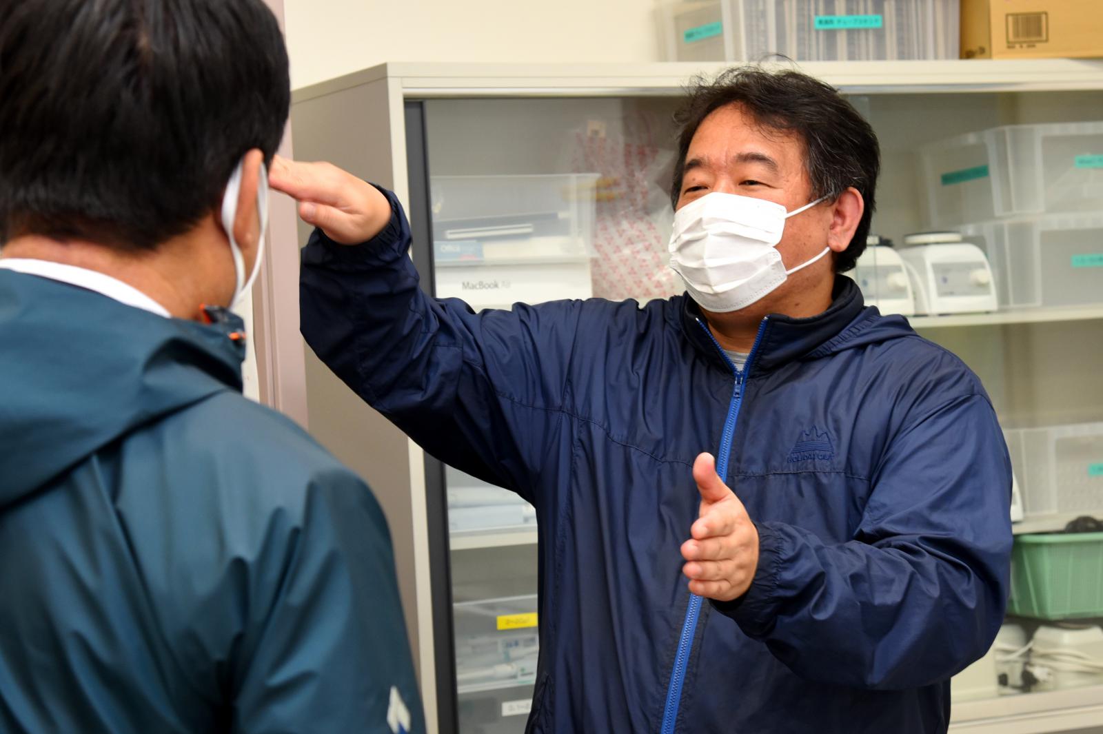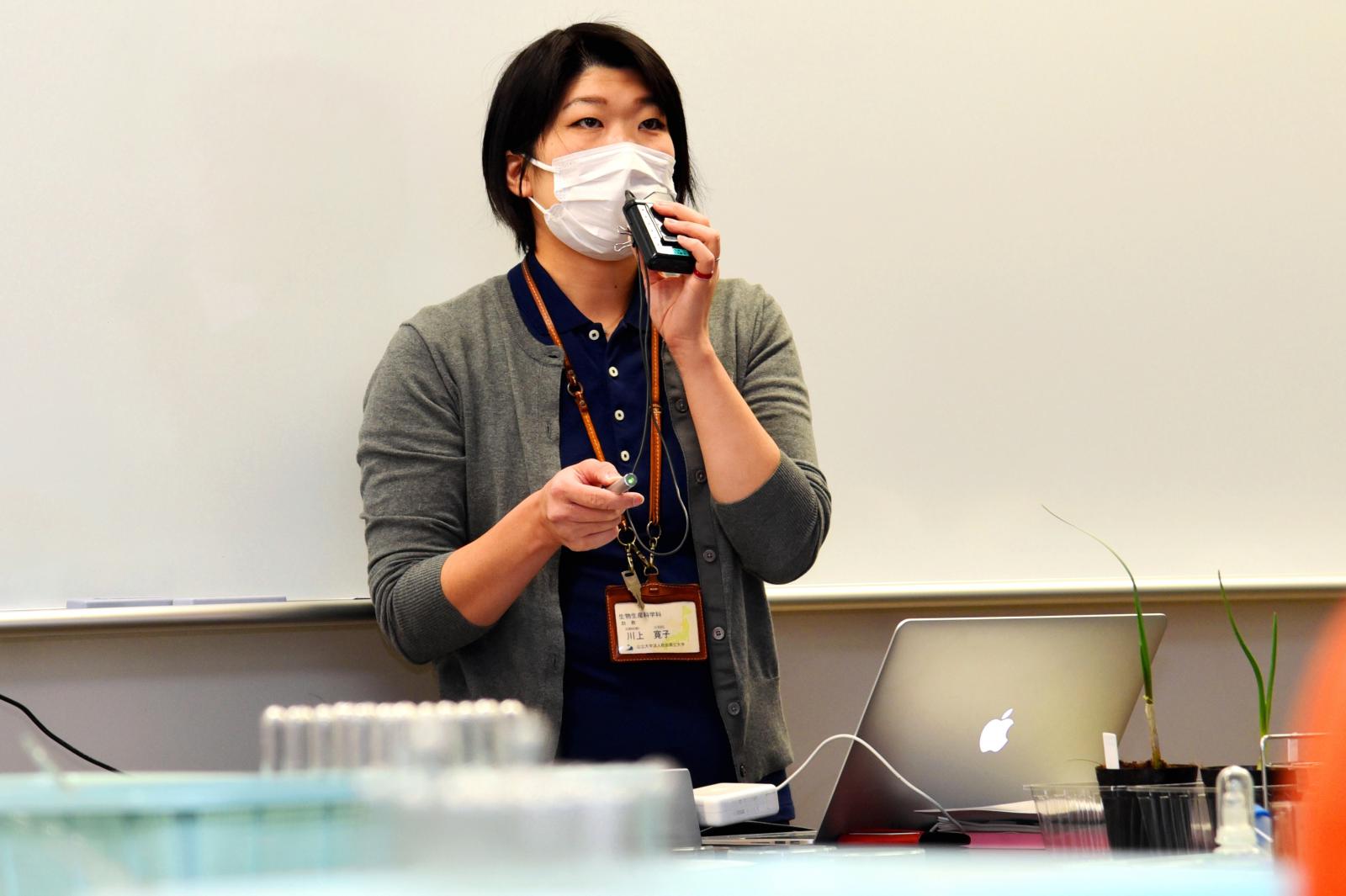 10月30日、秋田キャンパスにおいて、「秋田県にんにく生産者協議会」の視察研修が行われました。本学生物資源科学部では、平成30年度よりにんにくの品質維持や生産量の増加、更には産地化に向けた取り組みをサポートしており、今回は、古屋 廣光 特別研究員から「イモグサレセンチュウ(※)の進入防止対策」について、生物生産科学科の川上 寛子 助教から「地元優良種子のウイルスフリー化」について、それぞれ研究成果の紹介を行いました。また、研究発表の後には、生物生産科学科の戸田 武 准教授も交えての討論・情報交換も行いました。