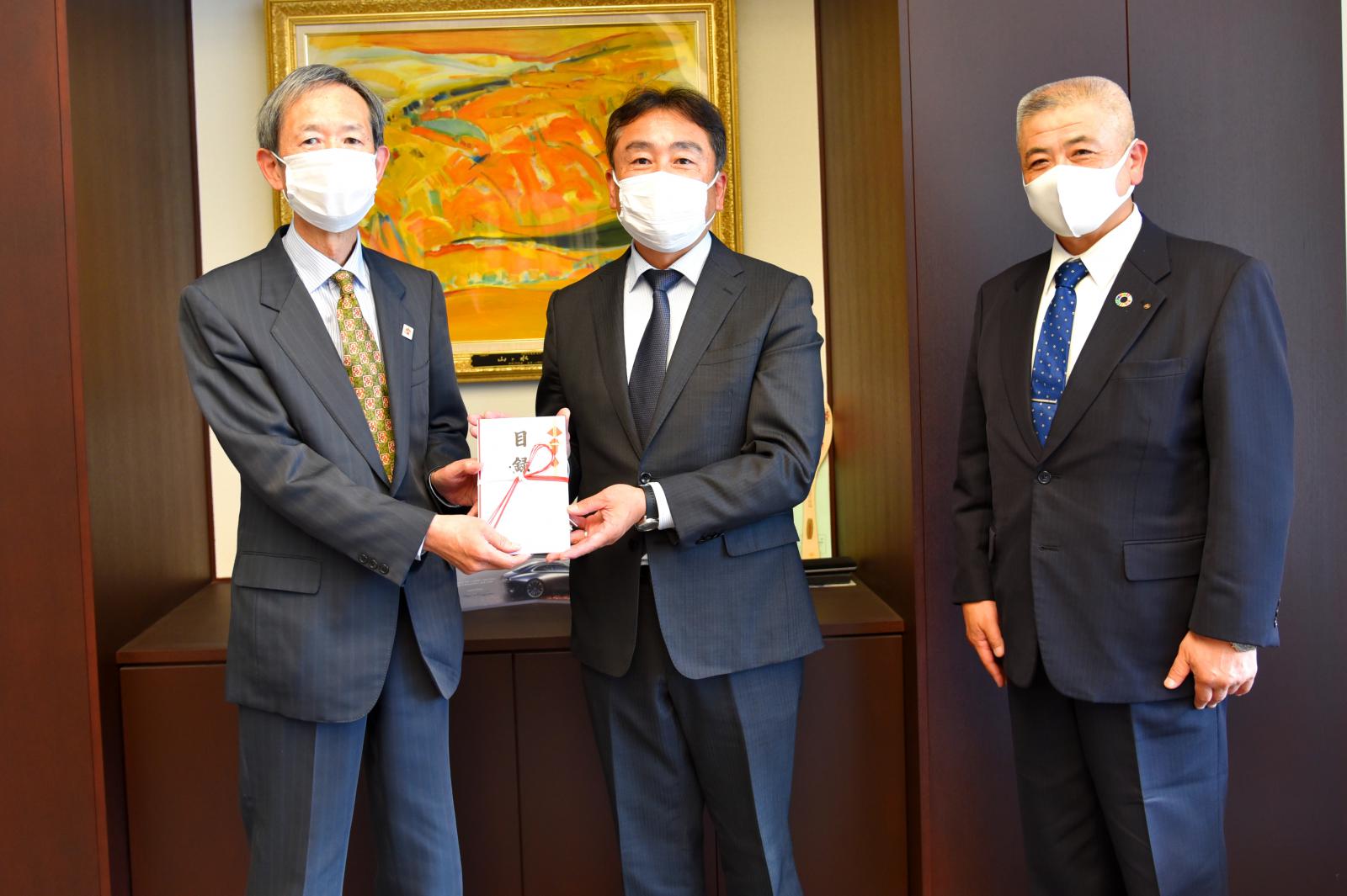 庄内機械株式会社(亀田 幸作 代表取締役社長)様が発行する「あきぎんCSR私募債」を秋田銀行(新谷 明弘頭取)様が受託され、その手数料の一部を、本学システム科学技術学部 機械工学科に奨学寄附金として寄贈されることとなり、10月26日(月)に贈呈式が行われました。庄内機械株式会社様のご厚意により寄贈いただきました奨学寄附金につきましては、学生教育の充実や学術研究の推進等に活用させていただきます。