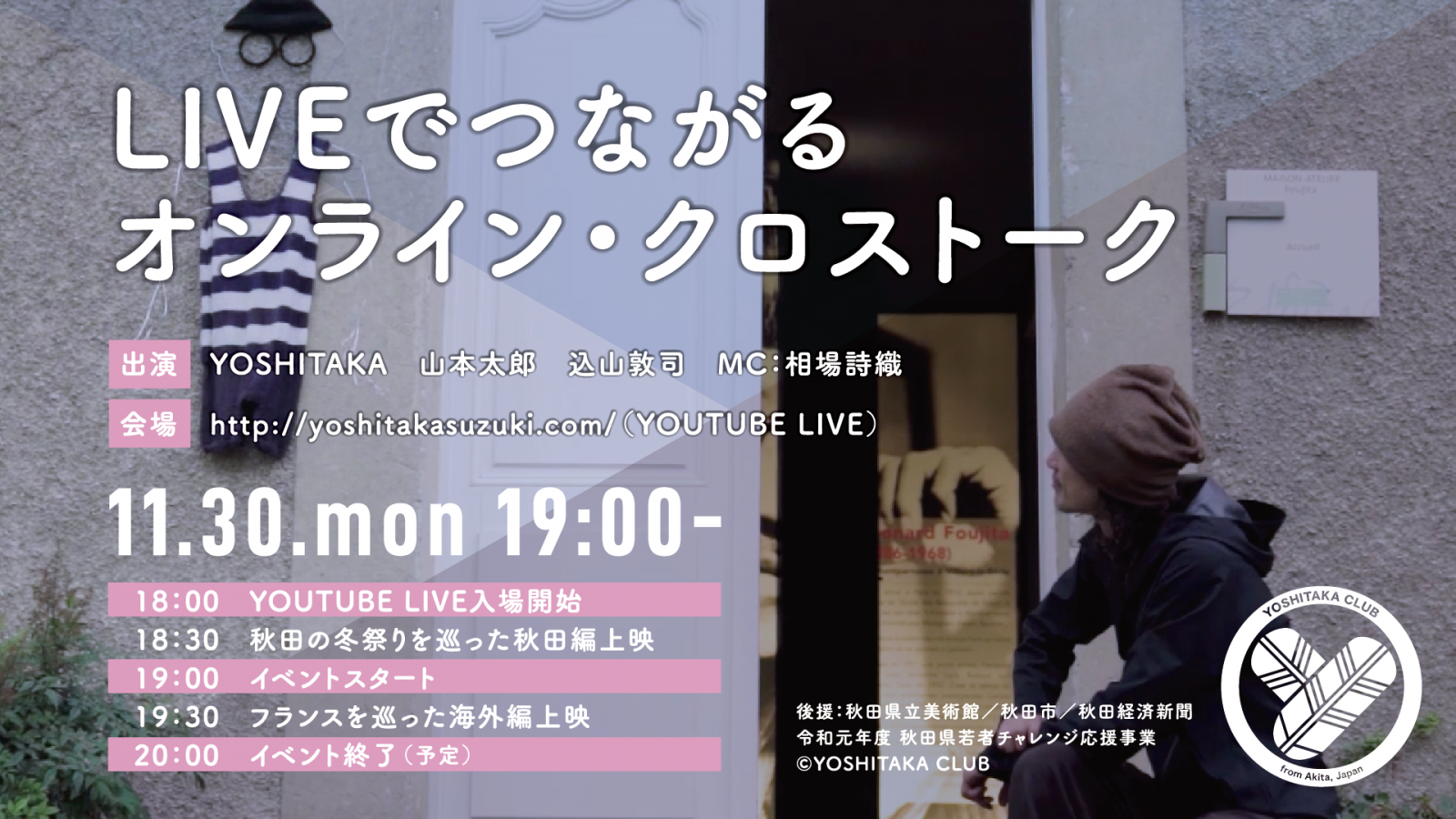 当日URLはこちら(外部リンク・YOSHITAKA CLUBホームページ)にて公開されるとのことです。ご興味のある方はぜひご覧ください。