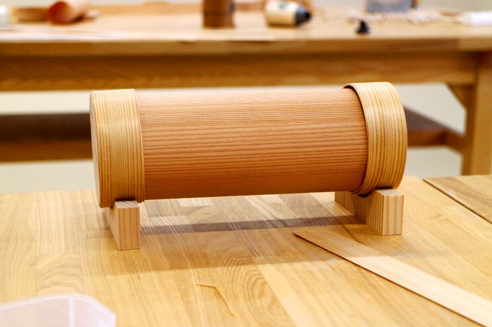 中心:秋田スギ突き板(長さ25cm)の円筒