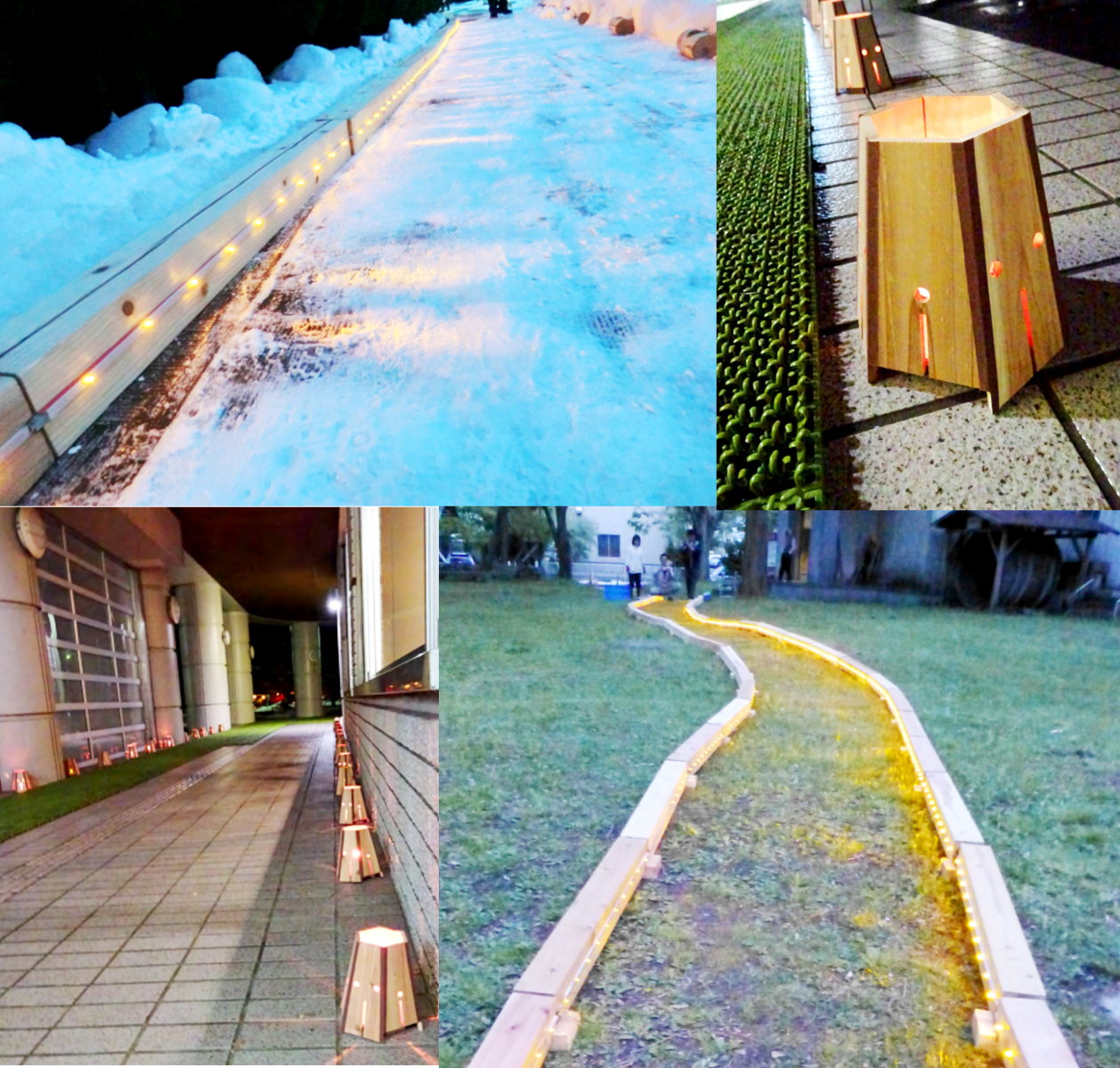 木材高度加工研究所の渡辺千明 准教授が事務局を務める「日本風景街道のしろ白神ネットワーク」では、能代市の中心市街地の活性化と賑わいを創出するイベント『のしろまち灯り』を支援してきました。今年は、新型コロナウイルスの感染拡大により本イベントは中止となりますが、能代市立図書館での「まち灯りmini」を支援するなど、以下の3箇所に木材高度加工研究所が製作したスギ材を活用した灯りを提供・点灯いたします。雪景色に浮かび上がる優しい光を、是非お楽しみください。